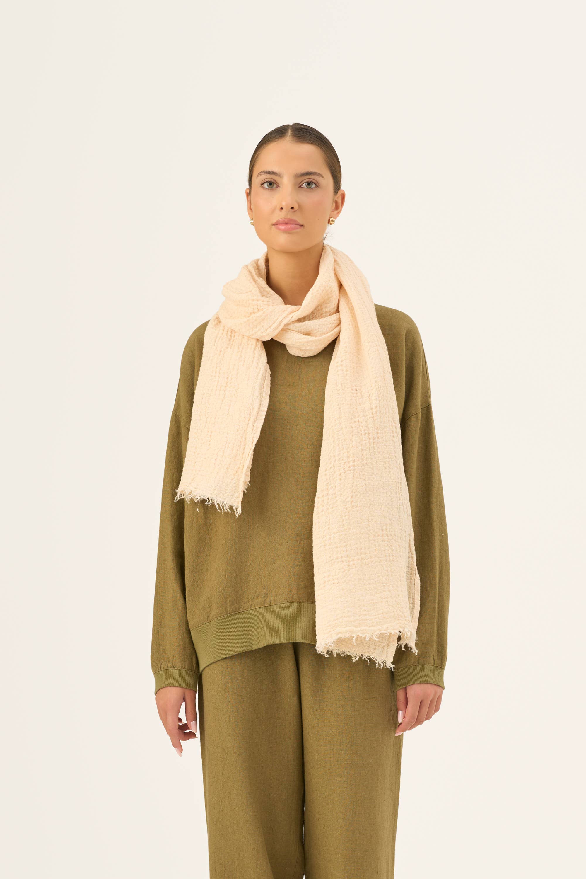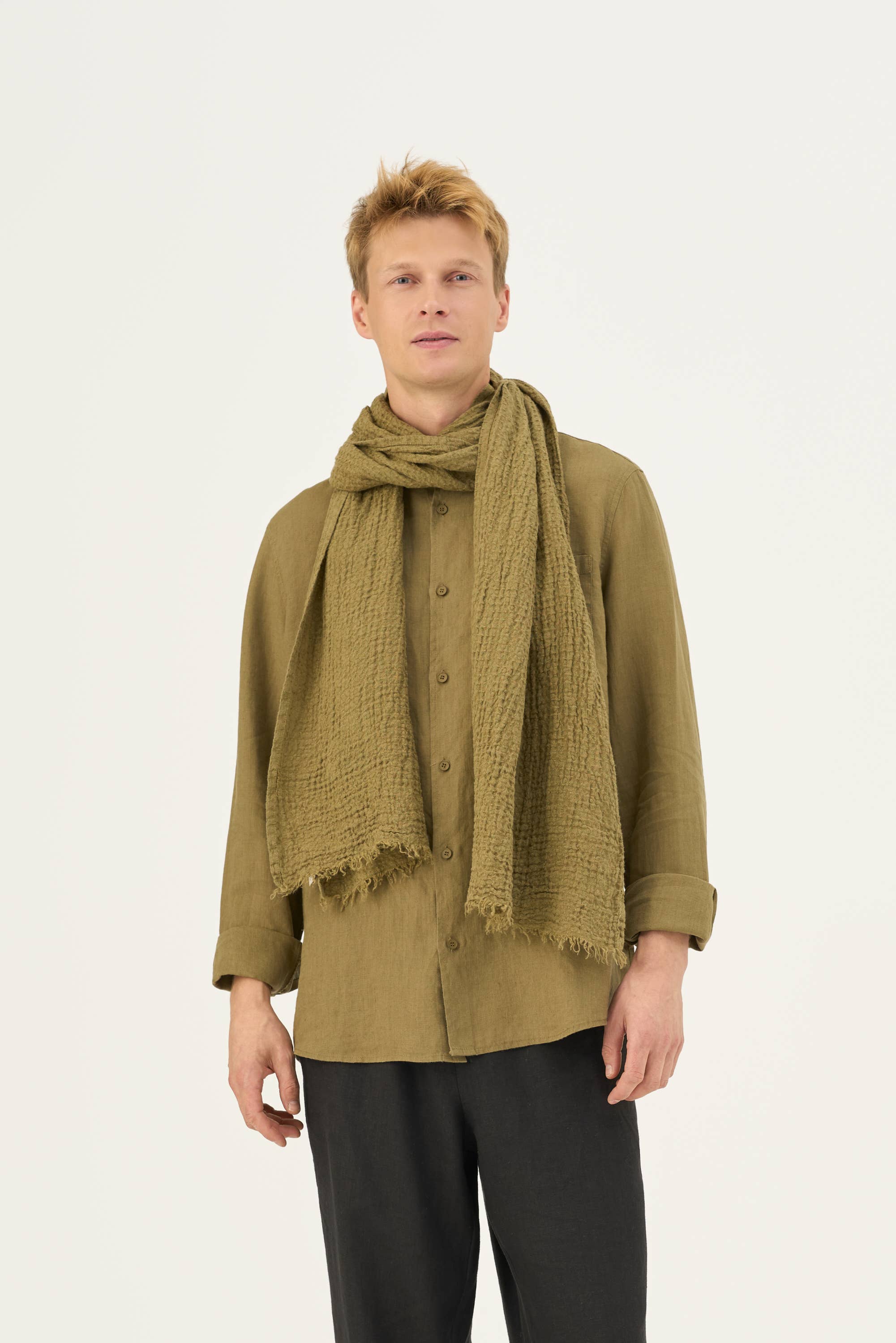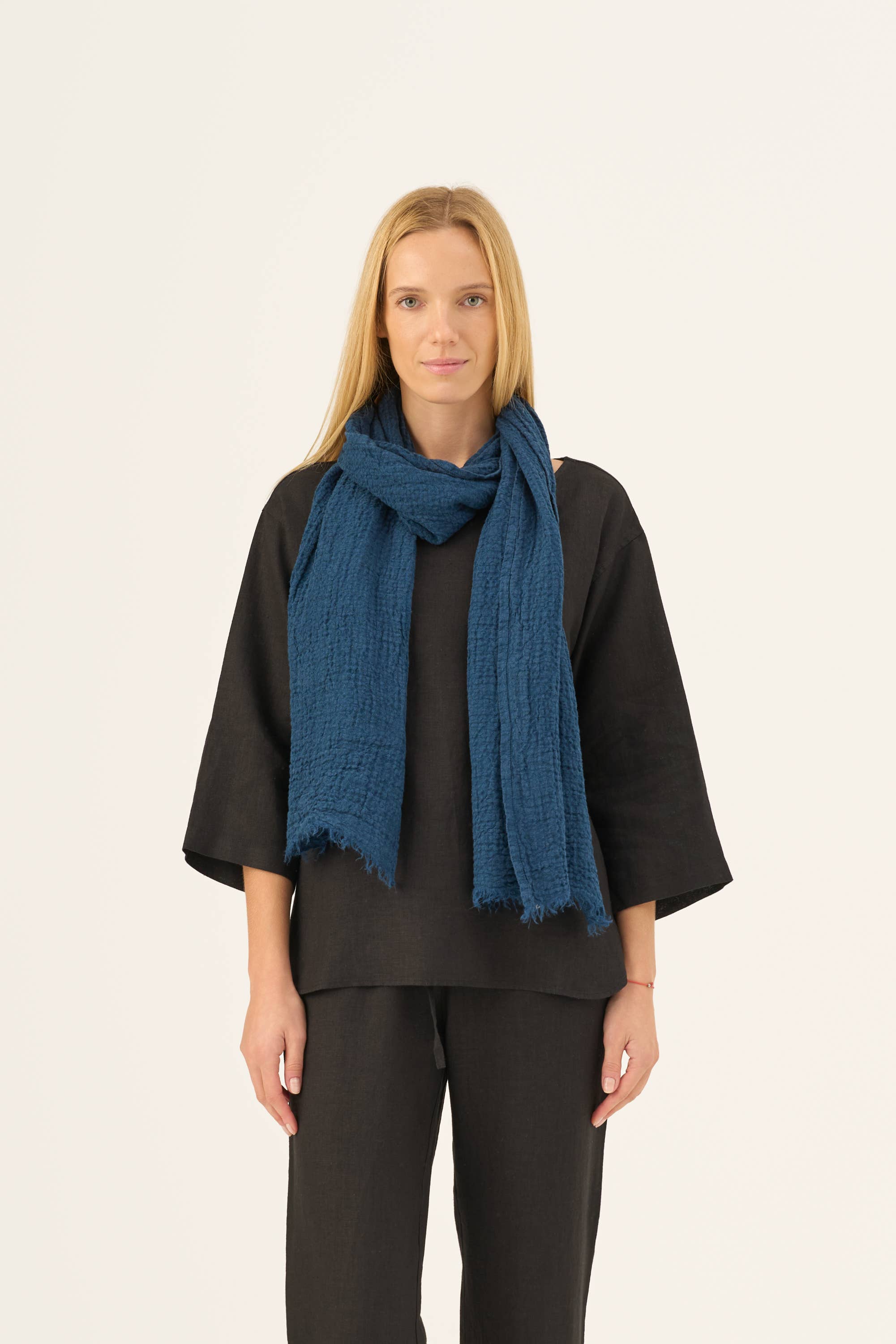 Un accessoire doux et léger comme une plume, que vous pouvez toujours avoir dans votre sac. Que ce soit pour une journée chargée, une promenade détendue dans le parc ou une soirée, laissez l'écharpe Woodbine compléter élégamment votre tenue tout en vous protégeant d'une légère brise. - Composition : 100 % lin (85 g/m²) - Fabriqué en Lituanie - Tissu certifié OEKO-TEX - Léger, fin et doux - Avec franges Dimensions : 65 x 180 cm (25,6" x 70,9")