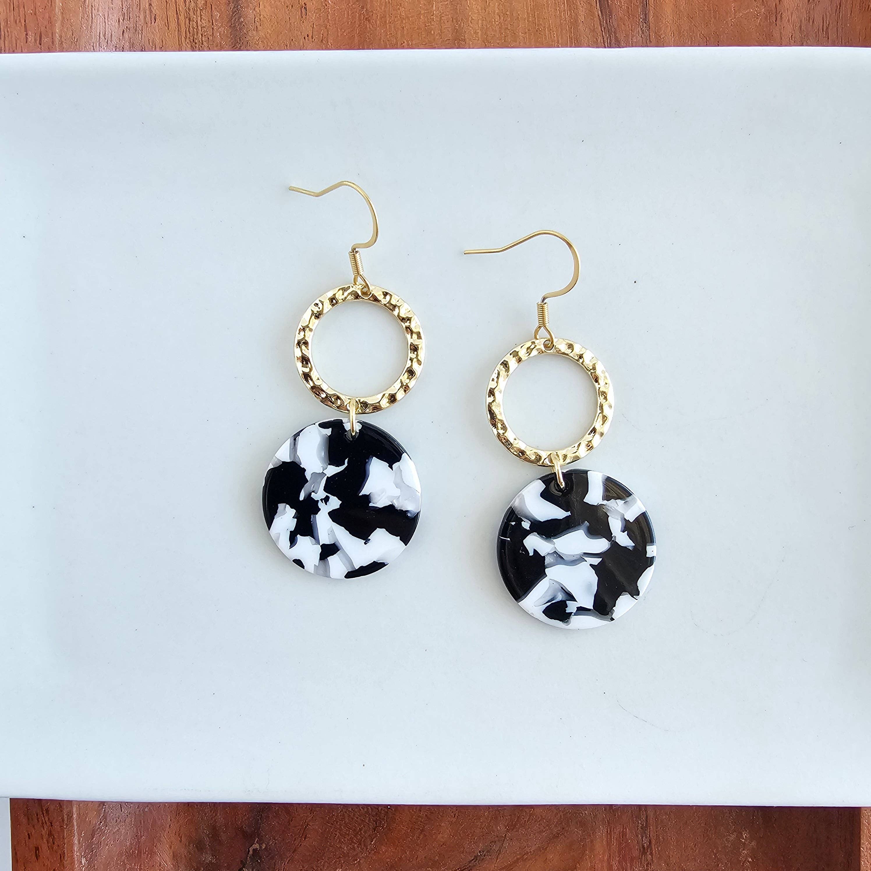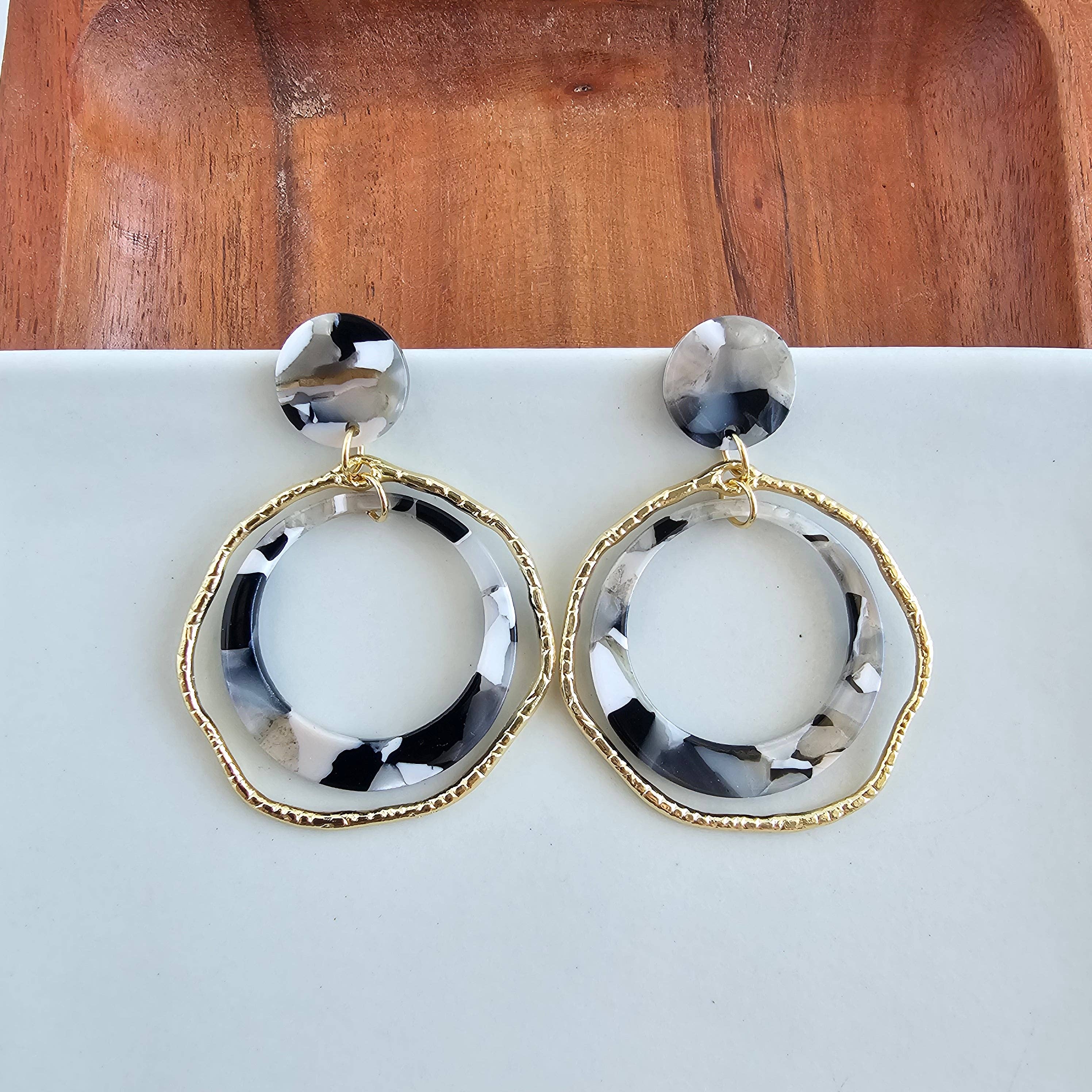 Découvrez nos boucles d'oreilles Savannah, le parfait mélange de glamour et de fun ! Ces boucles d'oreilles présentent des accents dorés qui ajoutent une touche d'élégance, associés à un acrylique noir pour un look audacieux et ludique. Démarquez-vous avec nos boucles d'oreilles Savannah uniques et stylées. * Crochets en acier inoxydable hypoallergénique plaqué or 18K * Acrylique d'acétate à base de plantes, léger et durable * Gouttes en alliage doré * Les motifs de couleur varient pour chaque paire, les rendant parfaitement uniques PDSF 25 $