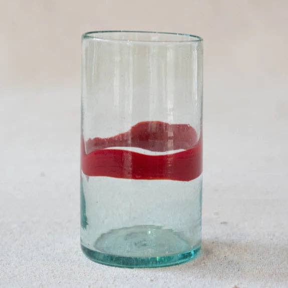Un gobelet multifonctionnel, avec la marque de l'artisan dans chaque pièce. Cylindrique de manière ergonomique pour votre confort et votre commodité, vous utiliserez ce verre recyclé plusieurs fois par jour. 12 cm de hauteur, 7,5 cm de diamètre. Pas de liquides chauds s'il vous plaît - lavage à la main uniquement. Tous nos produits sont fabriqués individuellement à la main à partir de verre recyclé en petites séries, et peuvent différer légèrement de la photo en couleur ou en dimension.