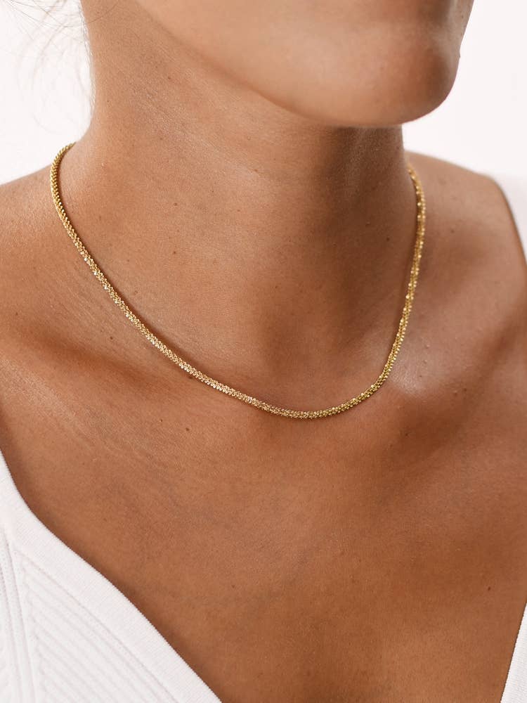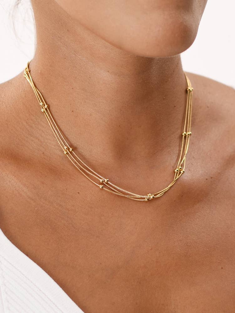 Chaîne de collier en acier inoxydable ornée de perles. Matière : acier inoxydable avec un revêtement en nitrure de titane de 0,3 à 0,5 µm et une couche d'or de 0,95 µm. Sans nickel ni plomb, ce qui garantit une longue durée de vie.
