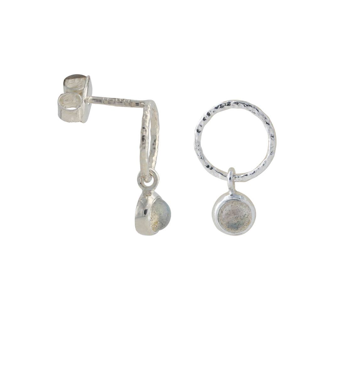 Clous d’oreilles en argent avec péridot, préhnite et pierre de lune