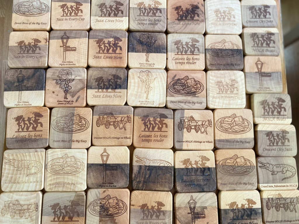 Nos aimants et sous-verres en bois pour réfrigérateur fabriqués à la main sont parfaits pour les boutiques de cadeaux et les boutiques de souvenirs à la recherche de produits uniques et de haute qualité. Chaque lot de 4 est fabriqué à partir de bois de noyer, de frêne et de hêtre de première qualité, garantissant à la fois durabilité et beauté naturelle. Ces aimants et sous-verres ajoutent une touche rustique et élégante à n'importe quel espace, que ce soit pour un usage personnel ou comme cadeau. Nous collaborons actuellement avec des magasins locaux de la Nouvelle-Orléans, en créant des designs personnalisés basés sur les thèmes de la NOLA. Si votre boutique est située dans un autre endroit, nous travaillerons avec vous pour développer des designs qui reflètent le charme local de votre région. Nos produits sont donc idéaux pour les destinations touristiques ou les boutiques de cadeaux locales. La personnalisation est essentielle : nous proposons des services de gravure afin que vous puissiez personnaliser vos aimants et sous-verres avec le logo de votre boutique, une phrase spéciale ou toute autre demande personnalisée. La livraison rapide garantit que vous les aurez en stock en un rien de temps. Idéal pour les boutiques de cadeaux, les boutiques de souvenirs et les événements spéciaux !
