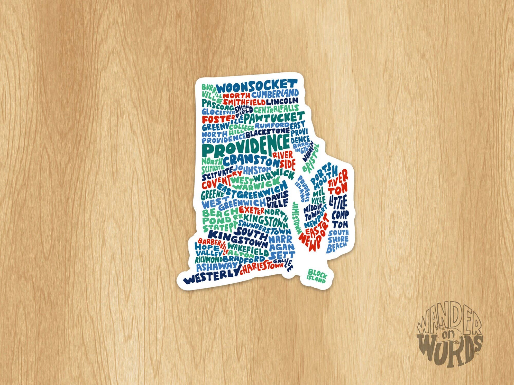 Carte du Rhode Island lettrée à la main