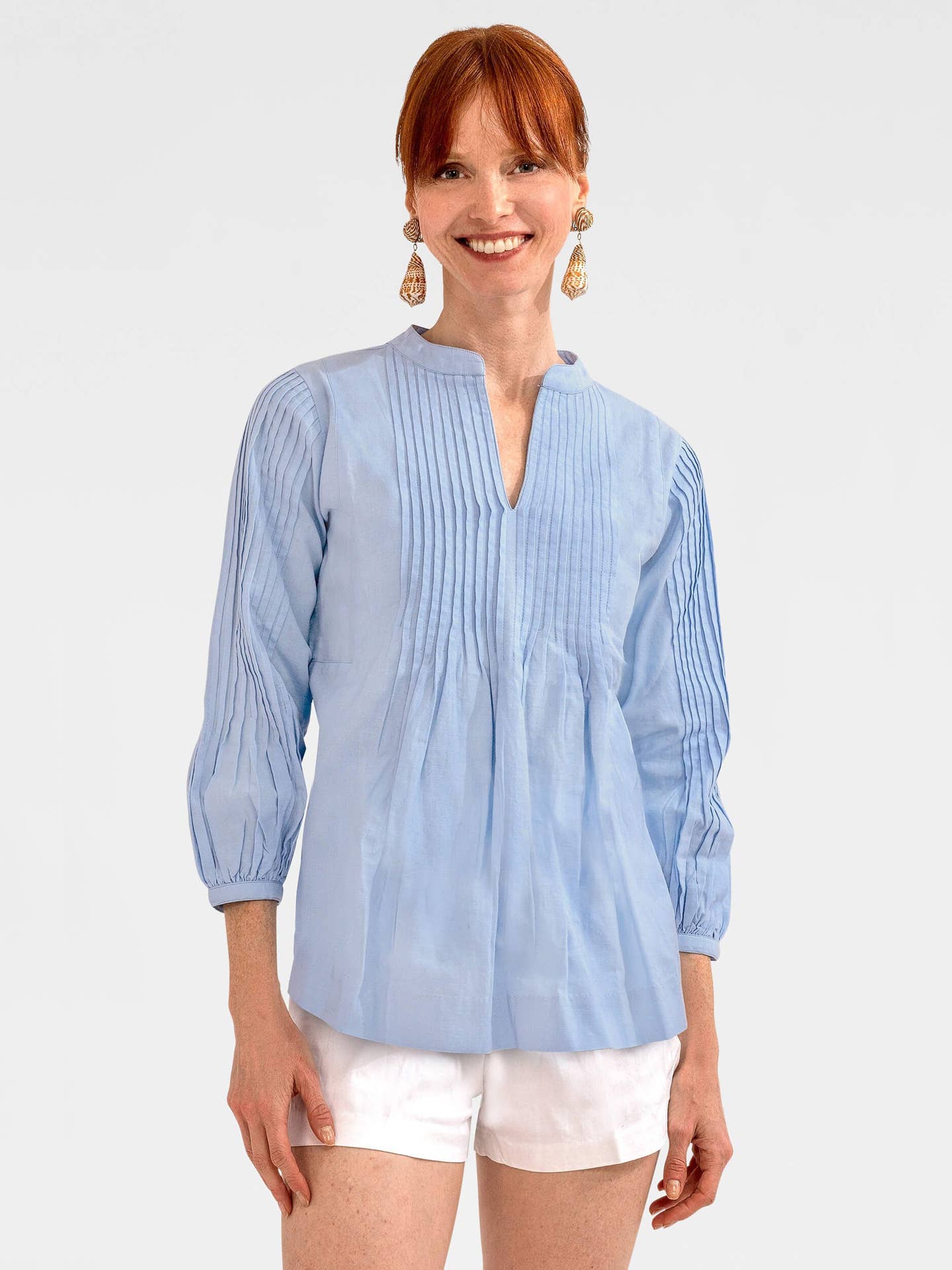 Description - Longueur de 25" - Encolure fendue à volants mandarin - Tissu coordonné : Tous les volants/panneau arrière intérieur - Manches 3/4 avec volants cloche de 3" - Fentes latérales de 7" Tissu et entretien - 100 % polyester - Lavage en machine à froid / Séchage en machine à basse température ou nettoyage à sec Tailles disponibles : XXS (Crevette) - XXXL (Diva) Comment mesurer BUSTE : Mesurez sous vos bras, autour de la partie la plus large de votre poitrine. TAILLE : Mesurez autour de votre taille naturelle, en gardant le ruban un peu lâche. HANCHES : Mesurez autour de la partie la plus large de votre corps au niveau du haut de votre jambe. Vous n'êtes toujours pas sûr de la taille dont vous avez besoin ? Notre équipe de service client peut vous aider à trouver la taille parfaite, appelez le 914-465-5180 ou envoyez un e-mail à customerservice@gretchenscott.com.