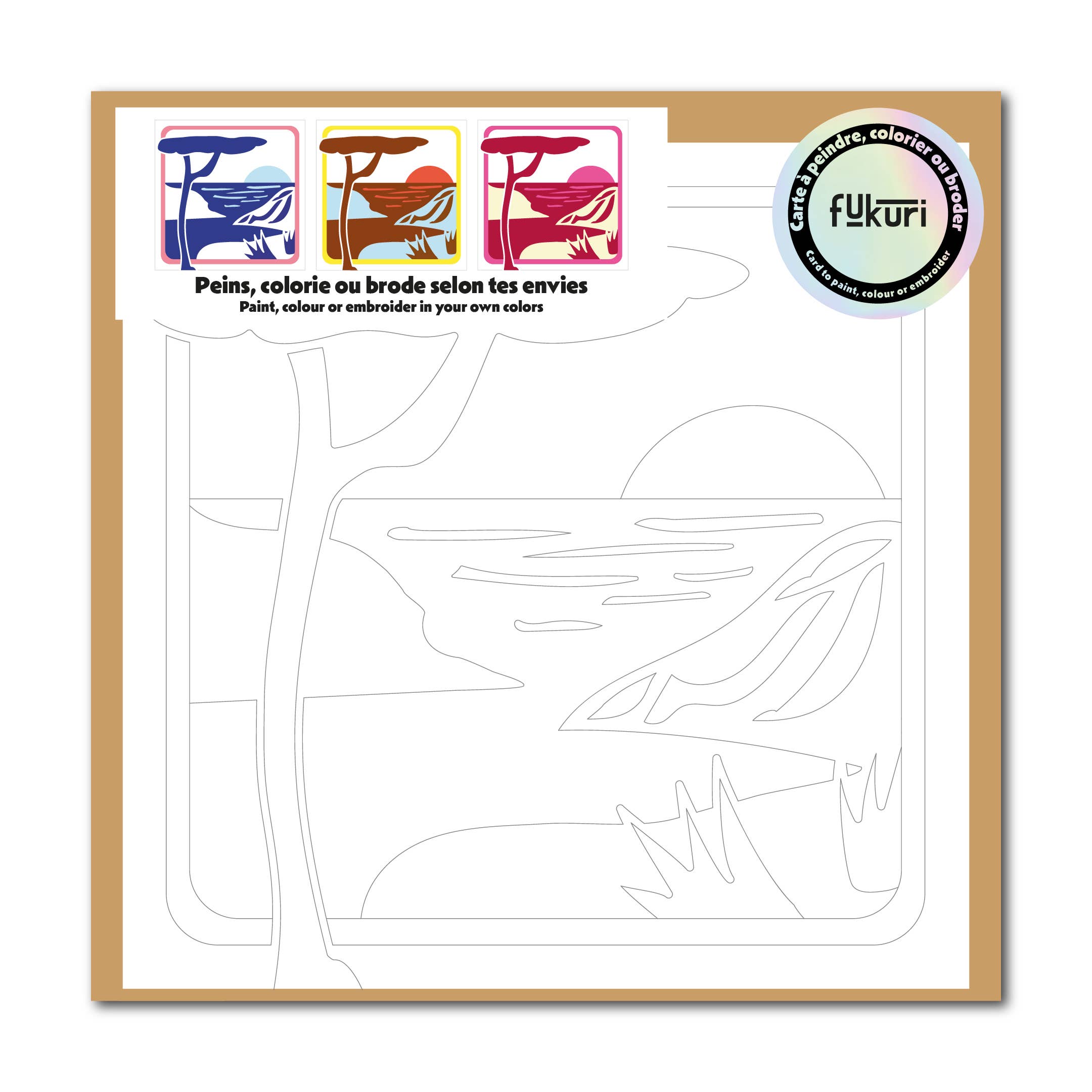 Fukuri offers creative activity kits to disconnect, away from screens. We offer awesome canvas kits, paint-by-number kits, and embroidery kits to personalize, upcycle, or repair clothes. The activities have in common a focus on illustrations and designs, and they are all very easy to implement. The kits are made in France. The materials are selected for quality and as locally sourced as possible. The threads and needles are made in France. The canvas fabrics are made in Germany and printed in France. The embroidery hoops are made of beech wood and manufactured in Turkey. The canvas kit boxes are made of FSC mixed cardboard and are recyclable, while the embroidery kit bags are home compostable. Fukuri is proud to be a member of 1% for the Planet and donates 1% of its revenue to environmental associations. Get started and disconnect.