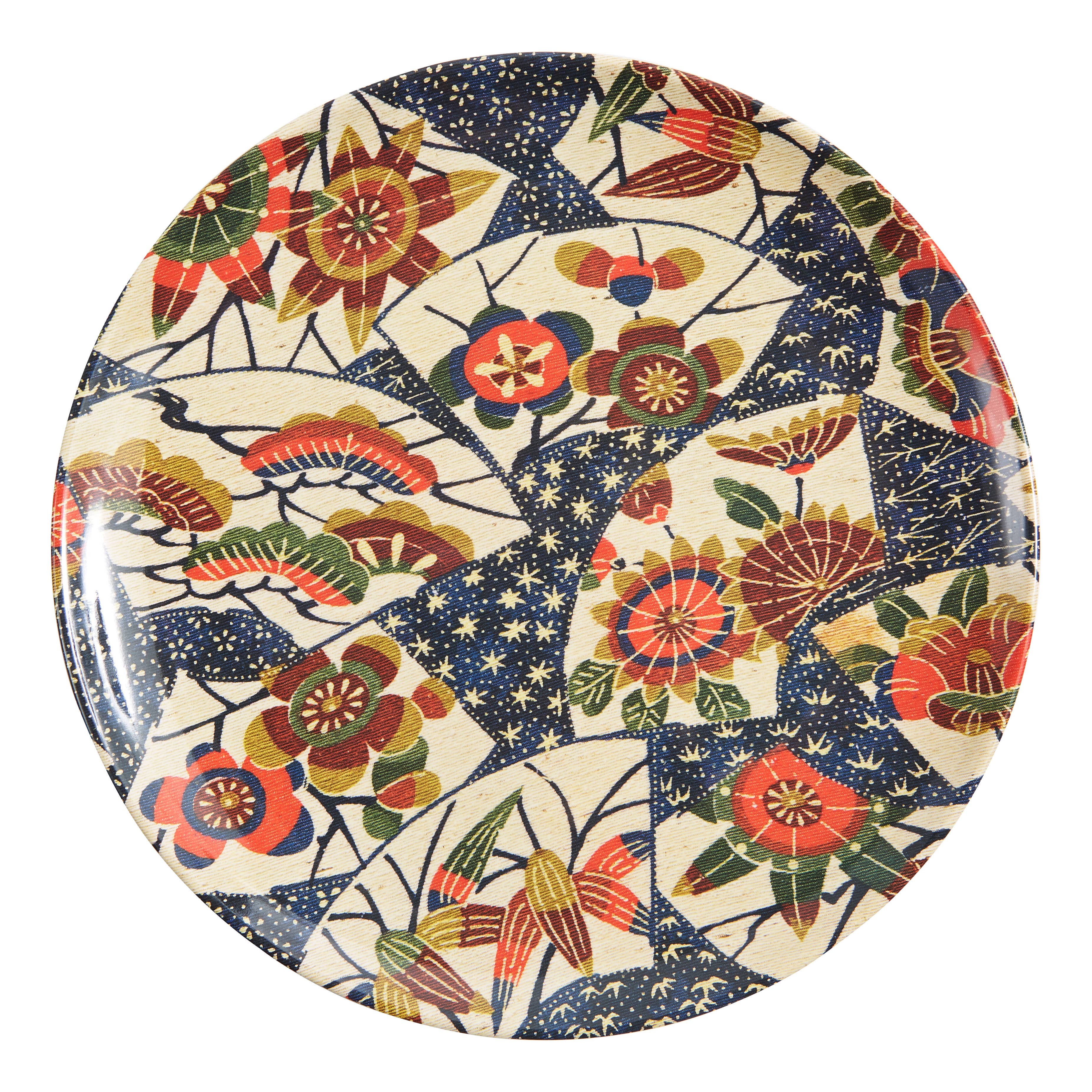The latest addition to our best selling Les Indiens melamine collection. Inspired by vintage Indian textiles, these heavy weight melamine plates take their shape from antique pewter plates. High quality heavy weight melamine BPA Free Dishwasher Safe Food Safe Not for use in microwave Each plate measures 9" Diameter Set of four assorted designs