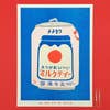 A risograph print of a japanese can of milky tea
