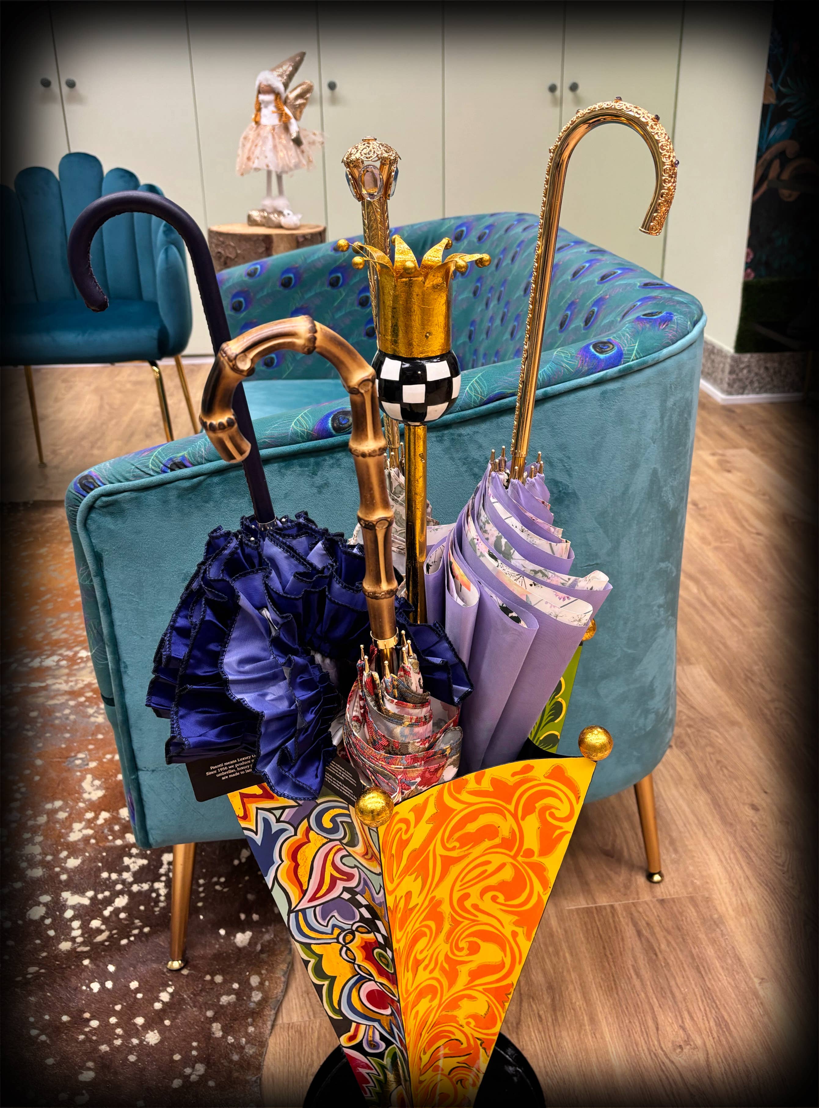 Paisley Umbrella with Bamboo Handle 100% Polyester - Bamboo Handle Length: 92cm - Diameter: 86cm Handmade in Italy