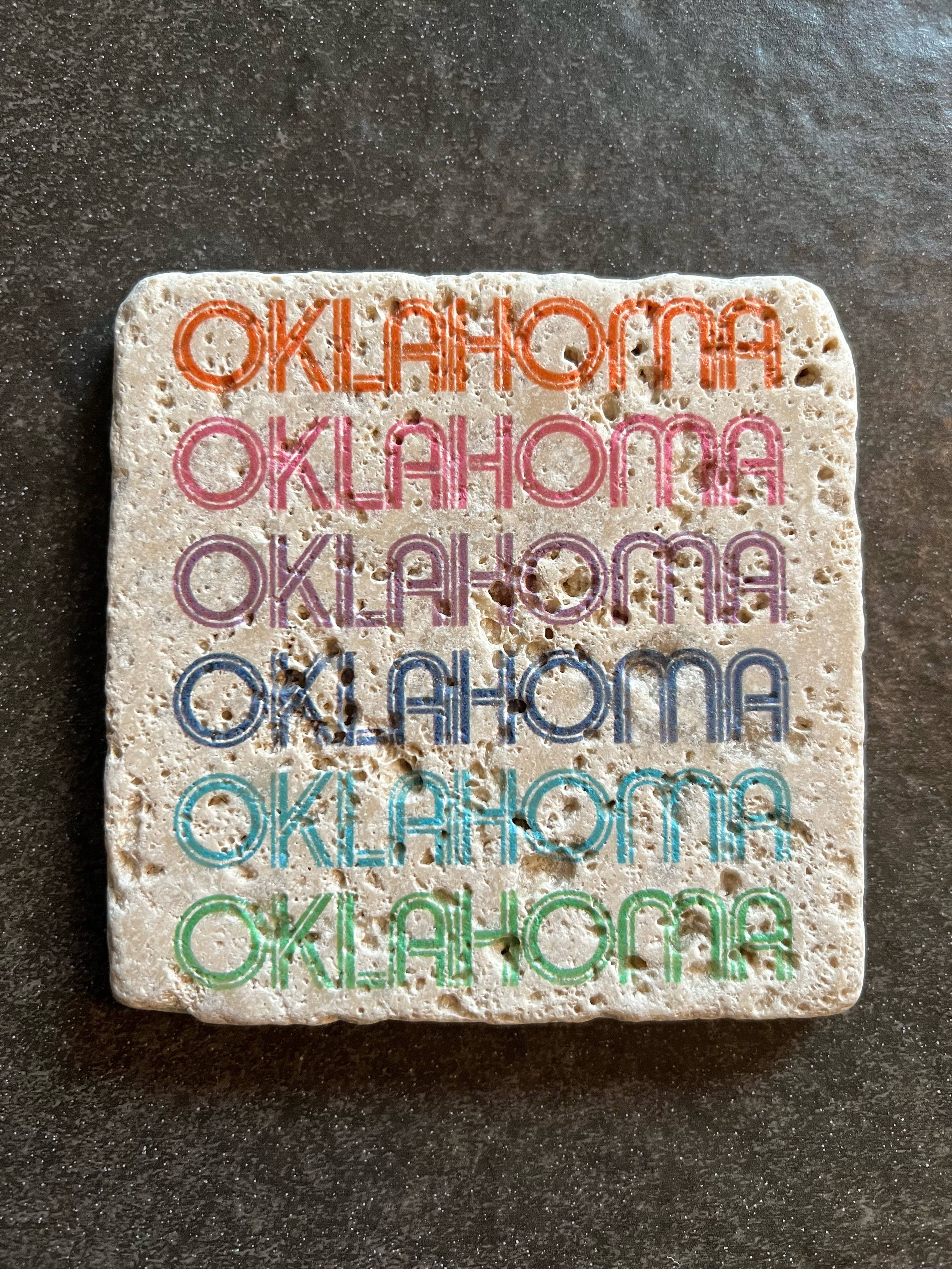 This beautiful travertine tile coaster is the perfect way to add a touch of Oklahoma pride to your home or office. The coaster features a stunning image of a buffalo with a fiery Oklahoma sunset color palette. The image is printed in high-quality, durable ink on a thick, heavy-duty travertine tile with cork backing. The coaster is also water-resistant and heat-resistant, making it perfect for use with hot or cold drinks. Packaging: Comes in retail packaging. Does not come with a price on it. Features: Stunning image of a buffalo silhouetted against a fiery Oklahoma sunset - Printed in high-quality, durable ink - Thick, heavy-duty travertine tile - Water-resistant and heat-resistant - Perfect for use with hot or cold drinks - Great gift for anyone who loves Oklahoma or the American West - 4 inch square tile coaster - Cork backing Proudly made in Oklahoma, USA. Want a custom print? Contact us to see about printing your image.