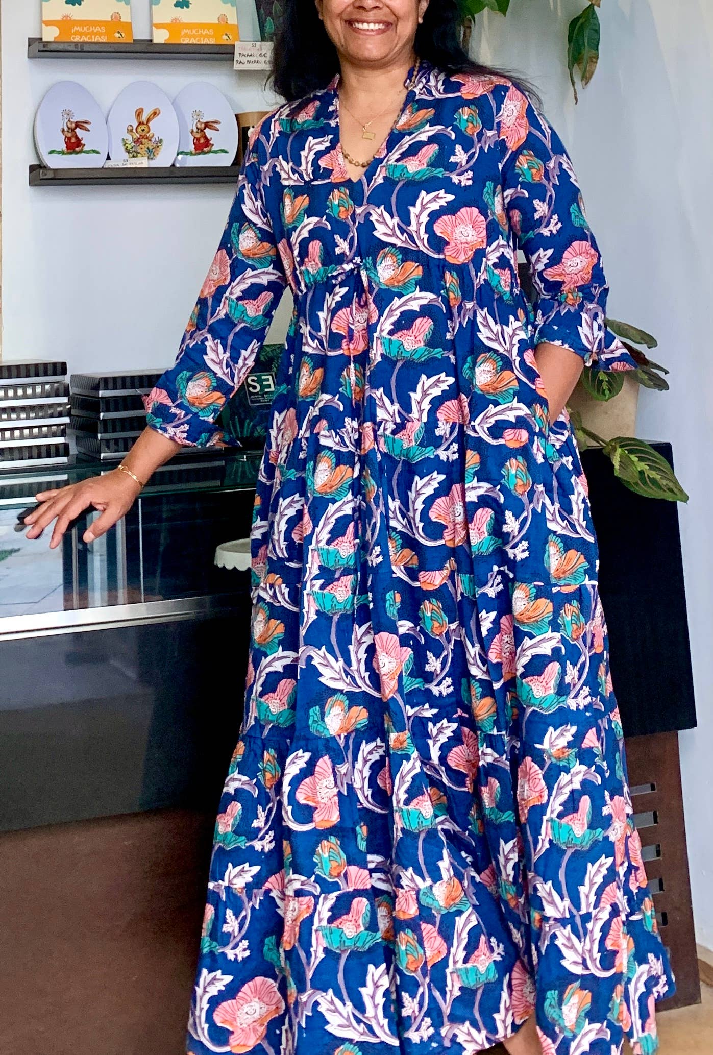 Ciao, sono Ruchita, architetto trasformato in stampatore di blocchi! Mi sono formato come architetto e ho lavorato come tale per anni, ma ho deciso di rivisitare la mia prima stampa a blocchi d'amore :-) Dopo aver avuto dei bambini ho deciso di fare una piccola pausa dall'architettura e stampare alcune cose nel mio studio di fortuna a casa mentre i bambini facevano un pisolino, facevano qualche sciarpe, i miei vicini e amici lo adoravano ed eccomi qui ora 10 anni dopo, proprietario e designer e stampatore part-time presso Peepal tree Disegno e realizzo prodotti che vengono stampati utilizzando blocchi di legno intagliati a mano, è un antico mestiere di stampa su tessuto e/o carta, utilizzando coloranti naturali e fibre naturali. Sono tutti unici in quanto sono stampati a mano e fatti a mano, non ce ne sono due uguali, questo è il divertimento e il fascino di questi prodotti. Lavoro con una cooperativa in India che sono stampanti, tintori e intagliatori di sesta generazione, è tutto fatto in casa con prezzi equi e solidali. Peepal Tree offre articoli per la casa come tovaglie, tovaglioli, strofinacci e abiti da donna come accappatoi, tuniche.