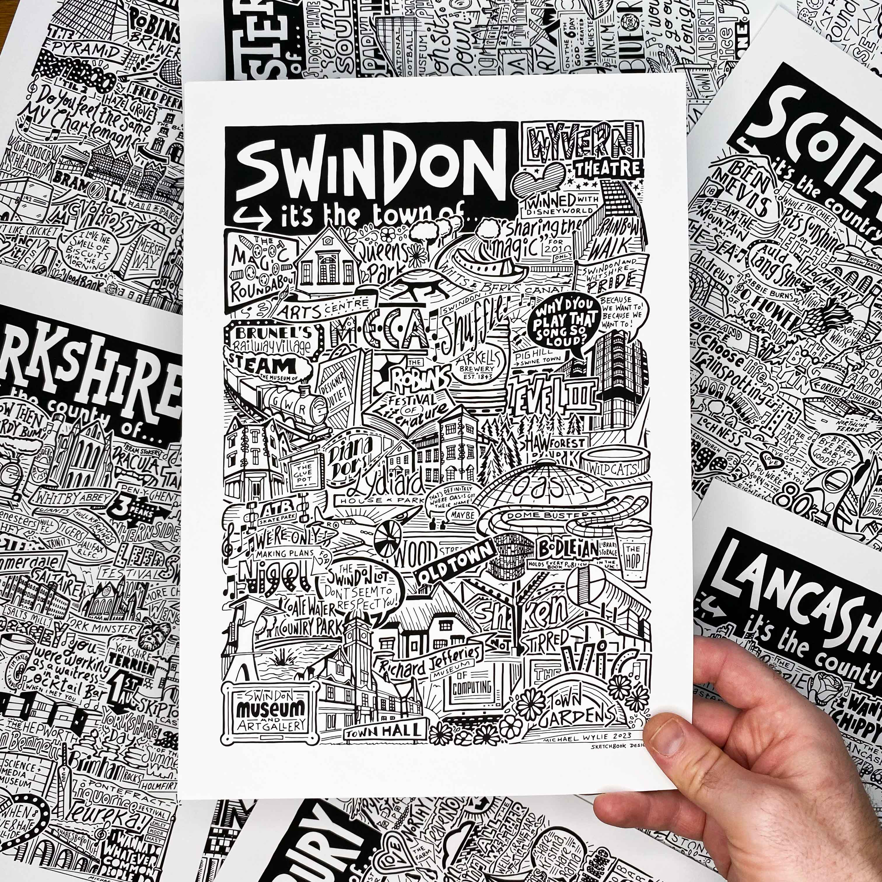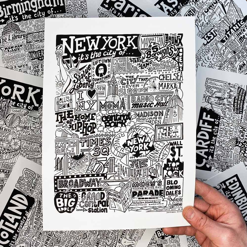 Sketchbook Design è stata fondata a Manchester nel 2015 dall'artista Michael Wylie. In Sketchbook Design ci impegniamo a produrre opere d'arte coinvolgenti che spesso si ispirano alla cultura popolare. Le nostre opere d'arte sono create a mano, abbracciando le piccole idiosincrasie che conferiscono alle opere create a mano la loro unicità e personalità. Molti dei nostri design tipografici e illustrativi ti incoraggiano a ricordare e ad aggiungere i tuoi ricordi personali alle nostre opere d'arte. Ci ispiriamo alle persone, ai luoghi e alle relazioni che abbiamo con la nostra cultura, che si tratti di musica, sport o la nostra città natale.