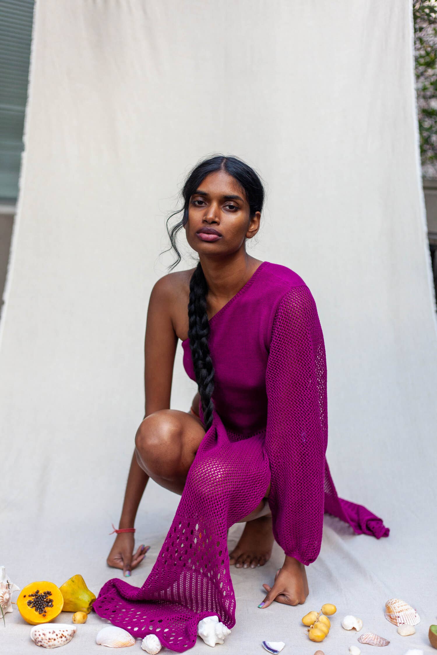 Abbigliamento ispirato al viaggio, alle tonalità vibranti e all'infinita bellezza della natura. Bilanciando colori audaci, tecniche artigianali, fibre naturali e un gioco innovativo sulle silhouette tradizionali, abacaxi è la visione indossabile della designer sudamericana Sheena Sood. Prende il nome dalla parola portoghese per ananas, abacaxi ibrida uno spirito tropicale con uno stile di vita di New York.