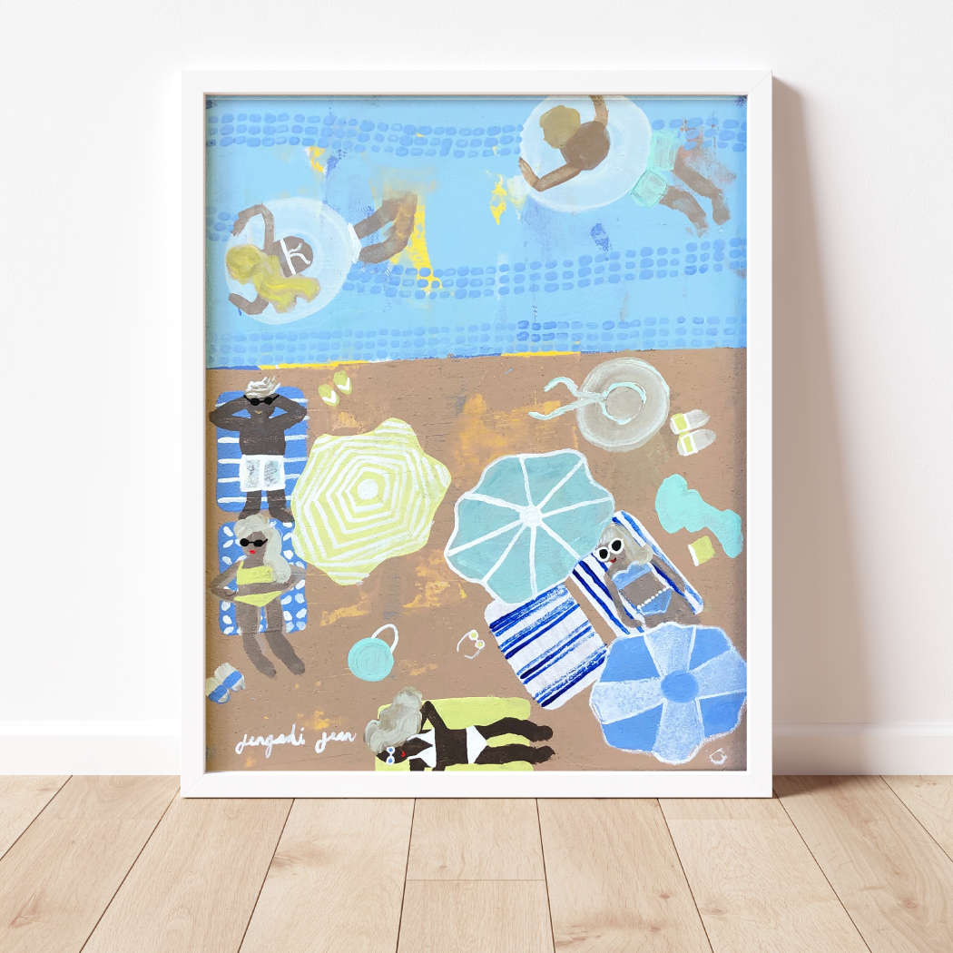 Jen (Jengadi Jean) è una bella artista del New England. La sua storia d'amore con l'acqua è iniziata fin dai suoi primi ricordi di viaggi a Cape Cod. Vivendo nel nord-est, non ci vuole molto per raggiungere l'oceano. Le estati nel cottage di famiglia della sua migliore amica sulla costa del Maine hanno suggellato la sua ossessione per il mare. La sua speranza è che i suoi dipinti si sentano come una boccata d'aria fresca (e salata) tutto l'anno. Con sfumature di vetro marino e colori vivaci del lungomare, quando strizzate gli occhi, vieni trasportato in quell'orizzonte stratificato dal mare. Jen si è laureata al Grove City College di Western PA nel 2011 con una laurea in psicologia. Mentre era a scuola, si dilettava in corsi d'arte e completava commissioni per amici e amici di amici in tutto il campus. Subito dopo la laurea, ha iniziato a insegnare scuola materna e ha riempito la sua classe di arte, installazioni, libri illustrati e parole di Picasso per incoraggiare la creatività e l'immaginazione. Dopo una crisi sanitaria a 24 anni, ha lasciato l'insegnamento per inseguire il suo sogno di essere designer e artista a tempo pieno e non si è voltata indietro.