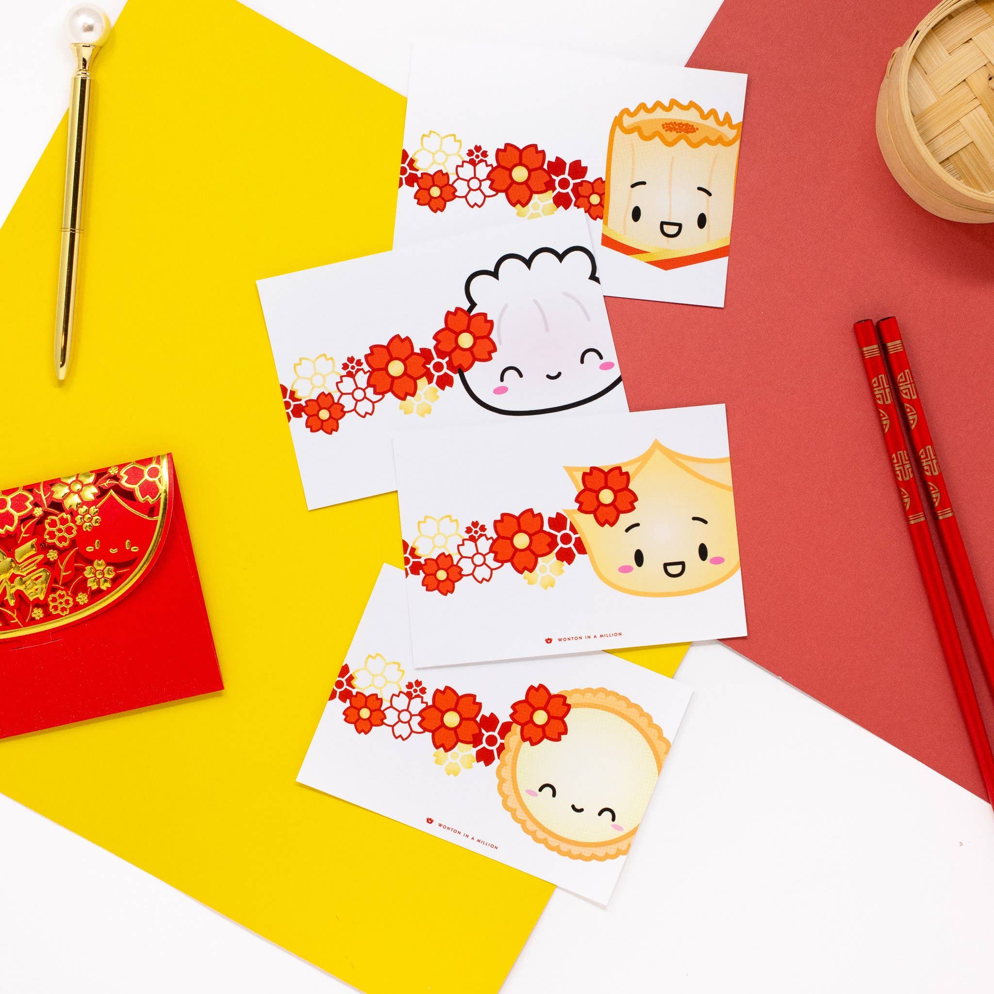 Ciao! Mi chiamo Cynthia e sono il proprietario e capo Dimsum Mangiatore di Wonton In A Million, casa del Team Dimsum Steam. Cos'è Dimsum, chiedi? Pensa: un brunch del fine settimana con tapas cinesi combinato con il ronzio di un mercato notturno asiatico! Wonton In A Million è stata fondata nell'aprile del 2015 quando, un giorno, stavo mangiando al ristorante Dimsum che mio padre gestisce a New York City, il Giardino Orientale, e il pensiero fluttuava nella mia testa... «Non sarebbe fantastico se ci fossero dei biglietti d'auguri punny e dimsum?» Così, il Team di Steam (Dream Team, capito?!) è nato. La mia speranza è che Wonton In A Million contribuisca a introdurre dimsum nel mondo, a portare le persone (di nuovo) nel quartiere di Chinatown in cui sono cresciuto, e a diffondere l'amore di questa amata cucina e rituale culturale in tutto il mondo. In cinese, dimsum significa «toccare il cuore». Quindi spero che il Team di Steam tocchi il tuo cuore, ti faccia affamare e ti ispiri a venire a sperimentare Chinatown di New York con occhi nuovi e a supportare le piccole aziende di Chinatown ovunque.