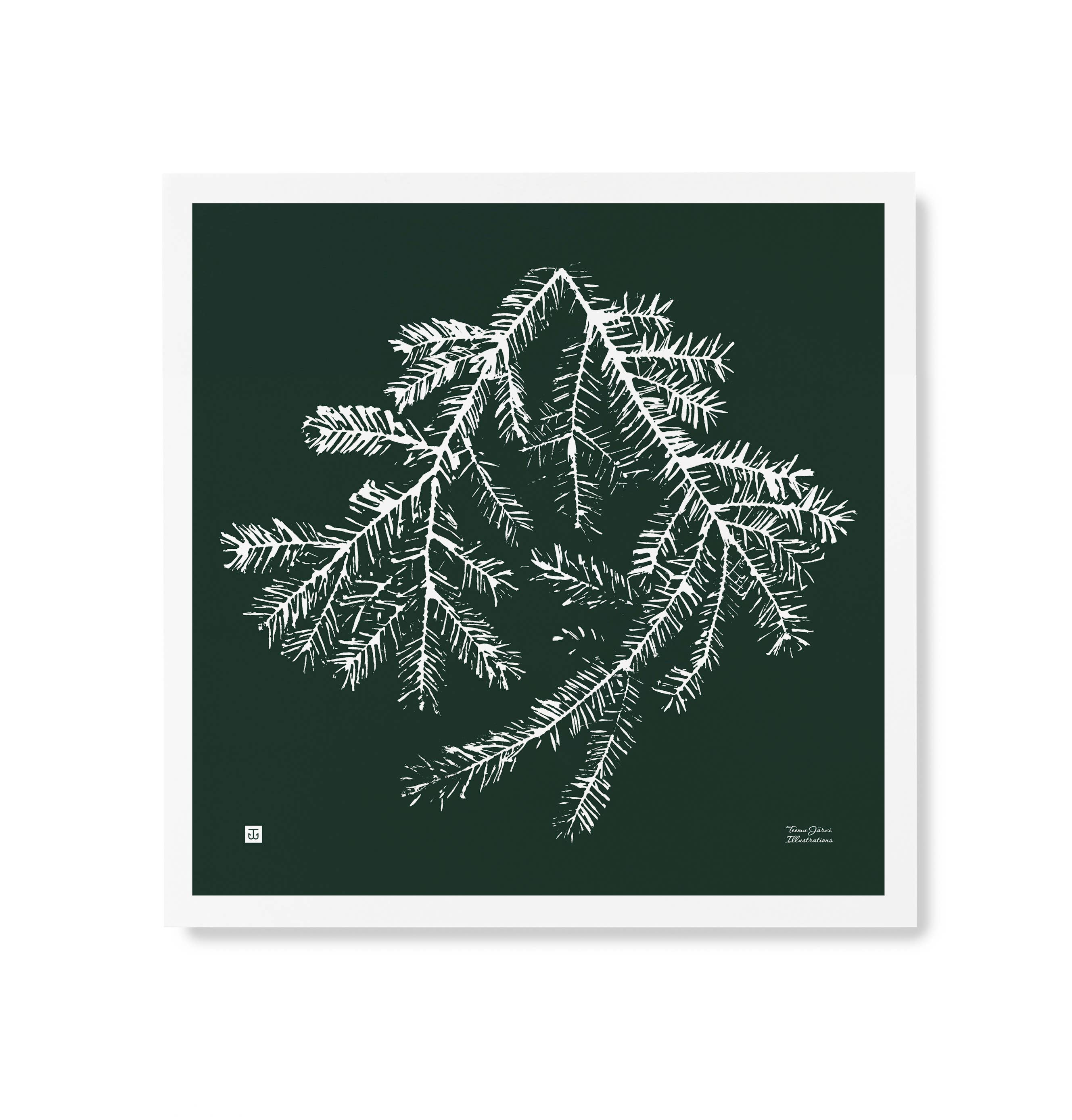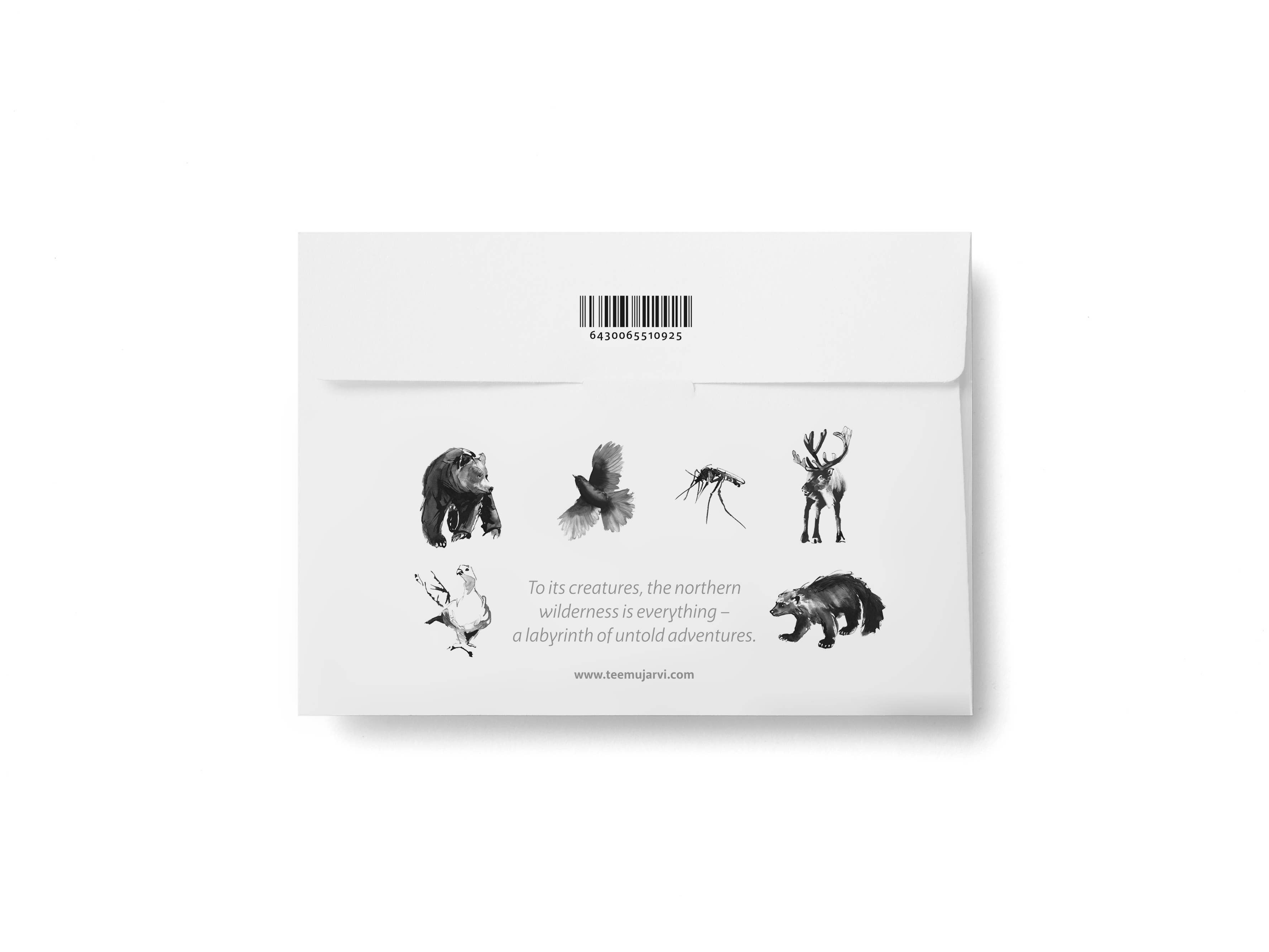 Arte da Northern Wilderness. L'artista Teemu Järvi trae ispirazione dalla natura selvaggia e dalla forza della foresta per migliorare il benessere. L'artista lavora con strumenti tradizionali come la penna a canna, creando opere d'arte che ci trasportano dalla nostra frenetica esistenza urbana alla calma rilassante della natura selvaggia primordiale. «Colleziono io stesso la canna nei laghi in Finlandia, quindi anche i miei strumenti sono fatti a mano. Questo mi affascina molto — disegnare la natura usando la natura. È naturale, biologico e senza tempo.» Tutti i nostri prodotti sono stampati in Finlandia su carta bianca o compensato di alta qualità, certificato FSC per una silvicoltura responsabile.