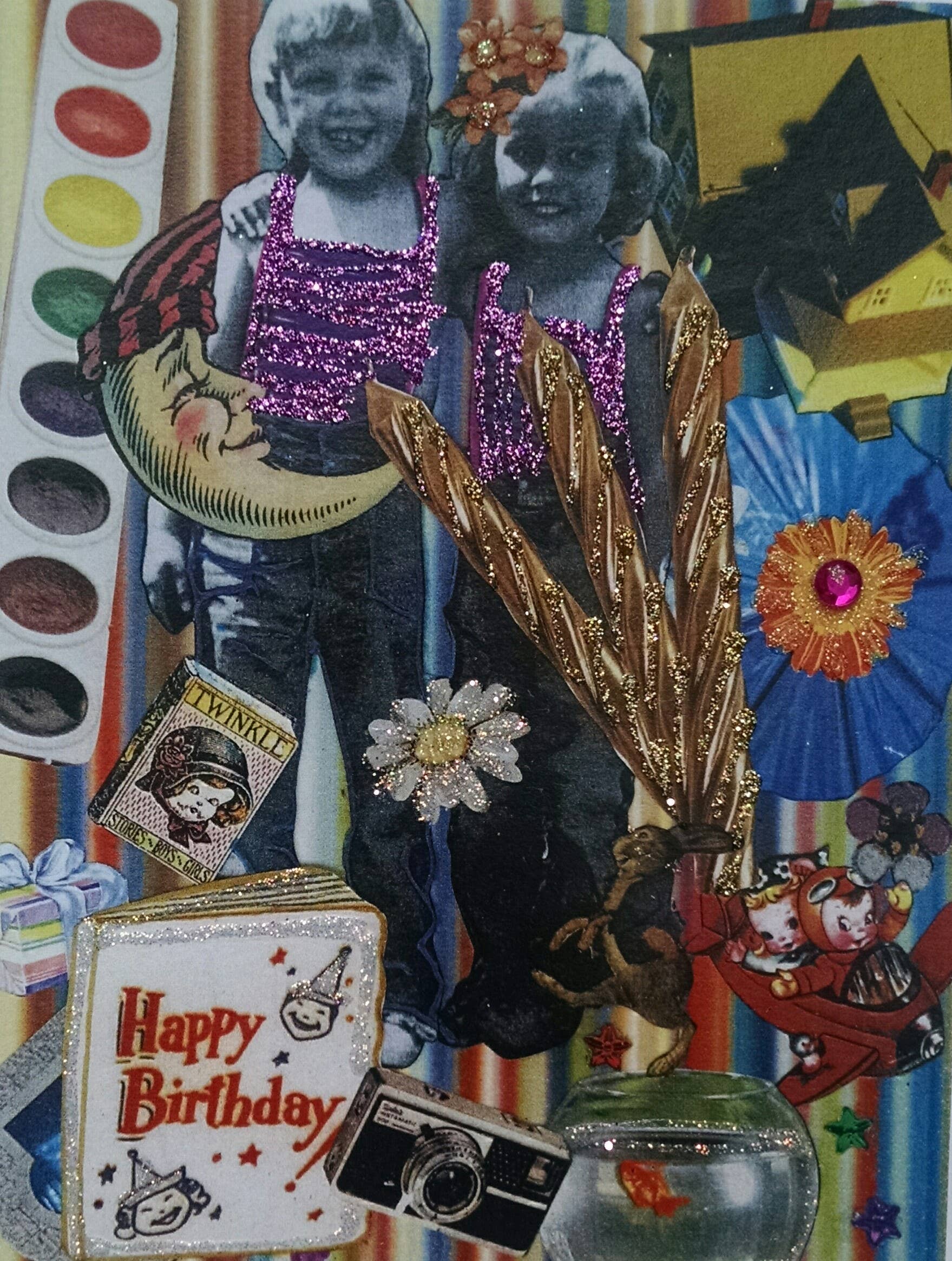 Adoro le vecchie carte, i motivi e le stampe. Mi piace scattare immagini che potrebbero non sembrare andare insieme e fare una foto coesa da loro. Uso la mia arte insieme ad altre effemere che ho spillato da anni; cose come vecchie riviste e lettere, carta da parati vintage, piume, foglie, petali di fiori, tutto ciò che mi colpisce con il suo colore, la consistenza o la forma. Per tutta la vita ho impreziosito e decorato quasi tutto ciò con cui vengo in contatto. Ora metto la maggior parte della mia energia creativa nella creazione di illustrazioni che poi stampa e trasformo in biglietti di auguri incornici. Ognuna è un'opera d'arte unica, firmata da me. Il mio lavoro è stravagante con un pizzico di lingua nella guancia per una buona misura e continuo a creare nuovi design per una linea di biglietti sempre fresca e nuova. Grazie per essere venuto, spero che ti piaccia quello che vedi!