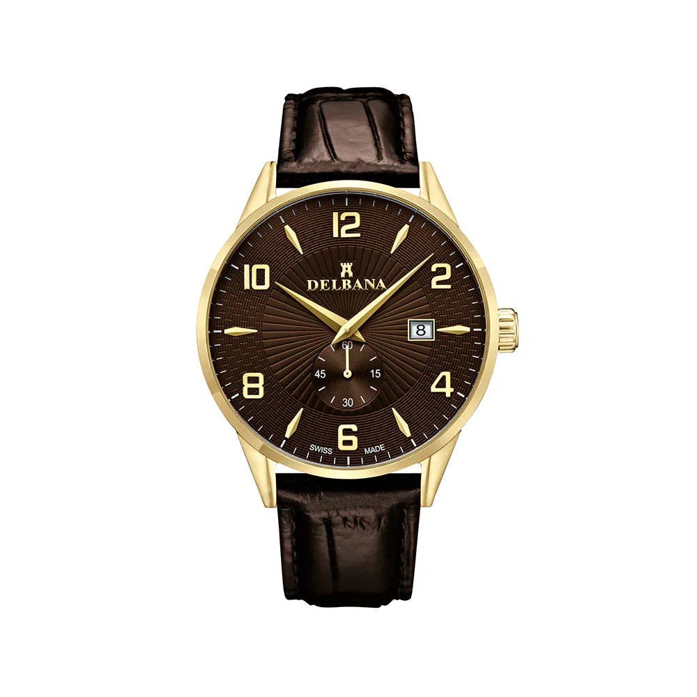 Fondata nel 1931, Delbana ha prodotto orologi svizzeri di alta qualità e a prezzi accessibili per generazioni. La Delbana Time Capsule illustra l'ampia esperienza del marchio e si espande con l'introduzione di nuovi modelli che dimostrano artigianato continuo, evoluzione e stile. La collezione odierna include eleganti orologi da donna, distinti orologi da uomo e audaci orologi sportivi ispirati alle corse, con un impegno costante per la qualità e l'accessibilità.