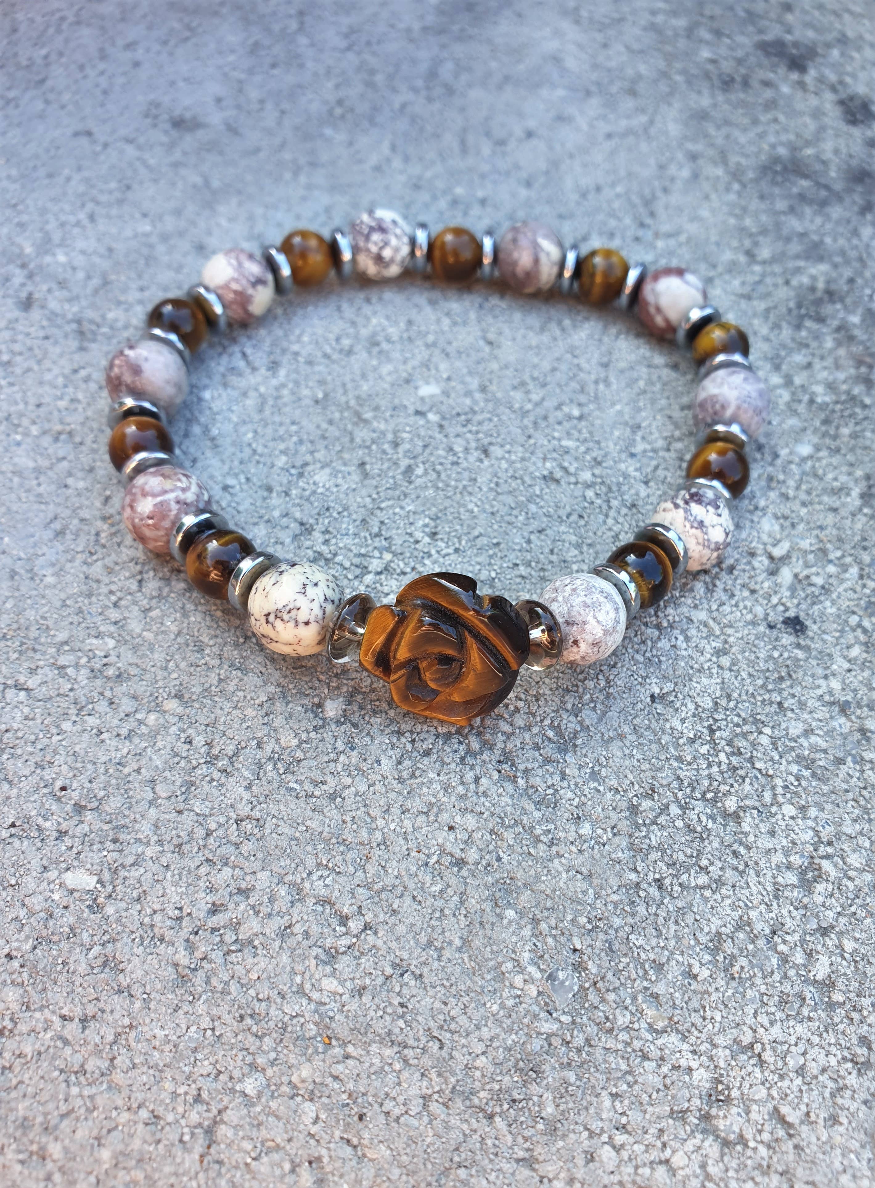 Noi umani abbiamo avuto un legame con le pietre dall'inizio dei tempi. Che si tratti di pitture rupestri su muri di pietra, scritte cesellate su tavolette di pietra, armi di pietra e punte di lancia, strumenti o come pietre decorative e protettive, la connessione tra le persone e le pietre risale a molto tempo fa. Purtroppo, a causa della nostra società in rapida evoluzione, abbiamo perso il contatto con le cose semplici. Tutto deve diventare migliore, più alto, più ampio e spesso dimentichiamo le nostre radici nel processo. Le cose semplici e belle che la natura produce sono diventate una cosa ovvia per molti. Io e mio marito ci siamo posti l'obiettivo di mostrare ancora una volta alle persone quanto può essere bella la natura - e non deve sembrare antiquata o insipida. I nostri gioielli sono tutti pezzi unici realizzati con pietre semipreziose di alta qualità e sono realizzati da noi con grande amore e passione. Offriamo anche una gamma di compagni di pietre curative che servono come supporto nella vita di tutti i giorni. Una descrizione delle pietre è inclusa con i prodotti in pietra curativa.
