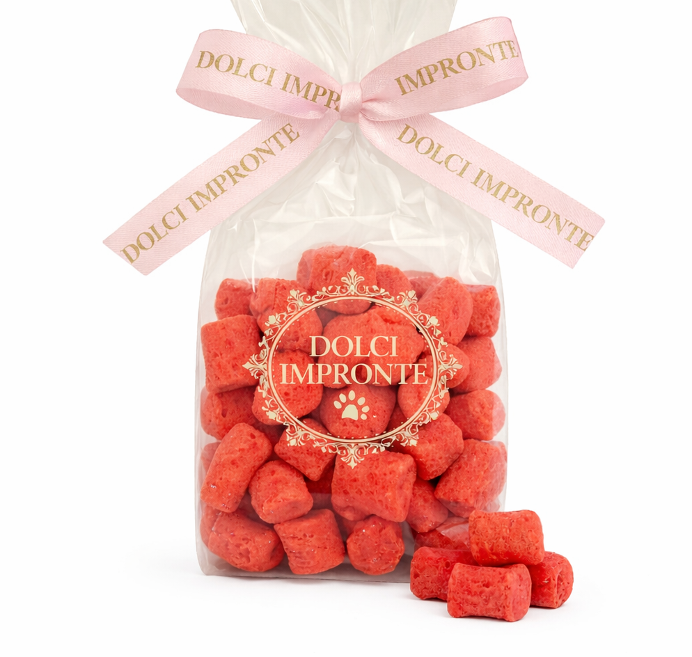 Dolci Impronte is a pet confectionery based on passion and research for fresh products with which creating quality sweets for pets. Dolci Impronte delights our pet friends palates with traditional hadnmade local specialities, were taste and tradition perfectly blend. The recipes, made with the help of a veterinary nutritionist, are made without sugar and with quality raw materials. The craftsmanship and attention to detail are the fundamental points of Dolci impronte, which creates artisanal sweets even for holidays and special occasions: easter doves, panettone, pandori, etc. everything for our friends dogs and cats. Known throughout Italy for the goodness and genuineness of its products Dolci Impronte is the reference pastry for all our gluttonous friends. Dolci Impronte .... a tasty tradition to tell! Complementary feed for dogs. Recommended ration: serve at the rate of 10% of the daily food quantity, serve at room temperature with fresh water separately. Authorization for Food and Health Supervision - ASL Zocca Prot. 0088901/16 of 26/11/201
