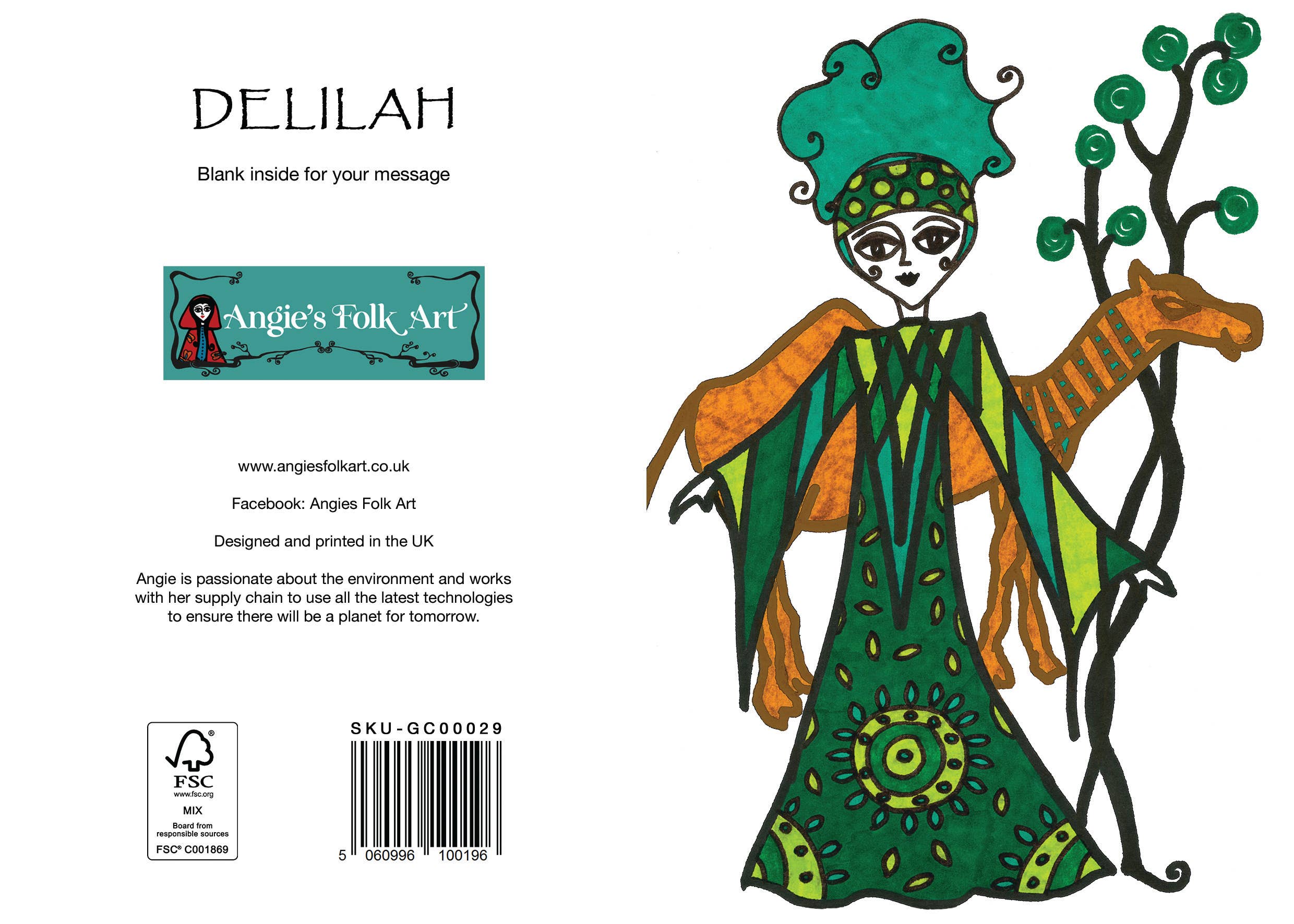 Angies Folk Art è una nuova collezione di immagini dell'artista Angie Jenkins che vive nel Devon. La sua arte nasce dall'amore per i racconti popolari di tutto il mondo e dalla fiducia nella forza del personaggio femminile. Usa una miscela di matita, penna e inchiostro e delicati lavaggi ad acquerello per creare immagini uniche per lei. Angie ha sempre camminato con leggerezza su questa terra, come meglio poteva, e ora porta questa filosofia nei suoi prodotti. Collaborando con la sua catena di fornitura utilizzando le più recenti tecniche di stampa digitale just in time per ridurre al minimo gli sprechi e riciclare le sostanze chimiche, materiali certificati FSC e inchiostri vegani, Angie's Folk Art è orgogliosa di far parte del nuovo volto del settore dei biglietti di auguri.