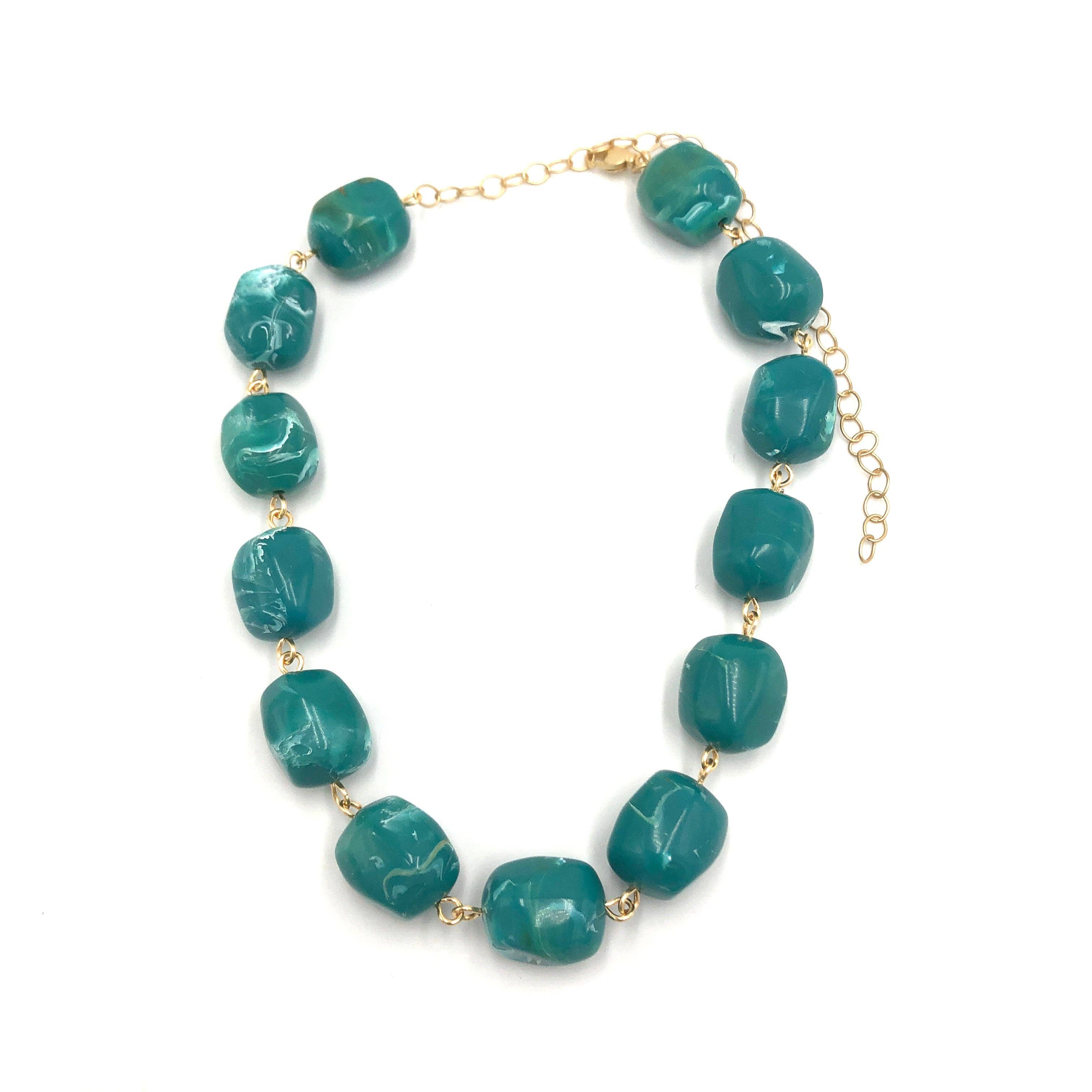 LEETIE LOVENDALE È UNA LINEA DI GIOIELLI NATA DA AVANZI. Nel 2004, designer & proprietario del negozio di perline, Heather DeSimone ha scoperto un magazzino che voleva vendere il suo intero contenuto di componenti di gioielli in plastica vintage. 40.000 libbre di perline, cerchi infiniti e forme geometriche piatte, ma la maggior parte non erano bead-store-ready. Dopo aver studiato vecchie tecniche di produzione e fabbricazione manuale utilizzate negli anni '60 e '80, Heather ha iniziato Leetie Lovendale. Una linea di gioielli resa moderna per oggi da parti vintage lucite.
