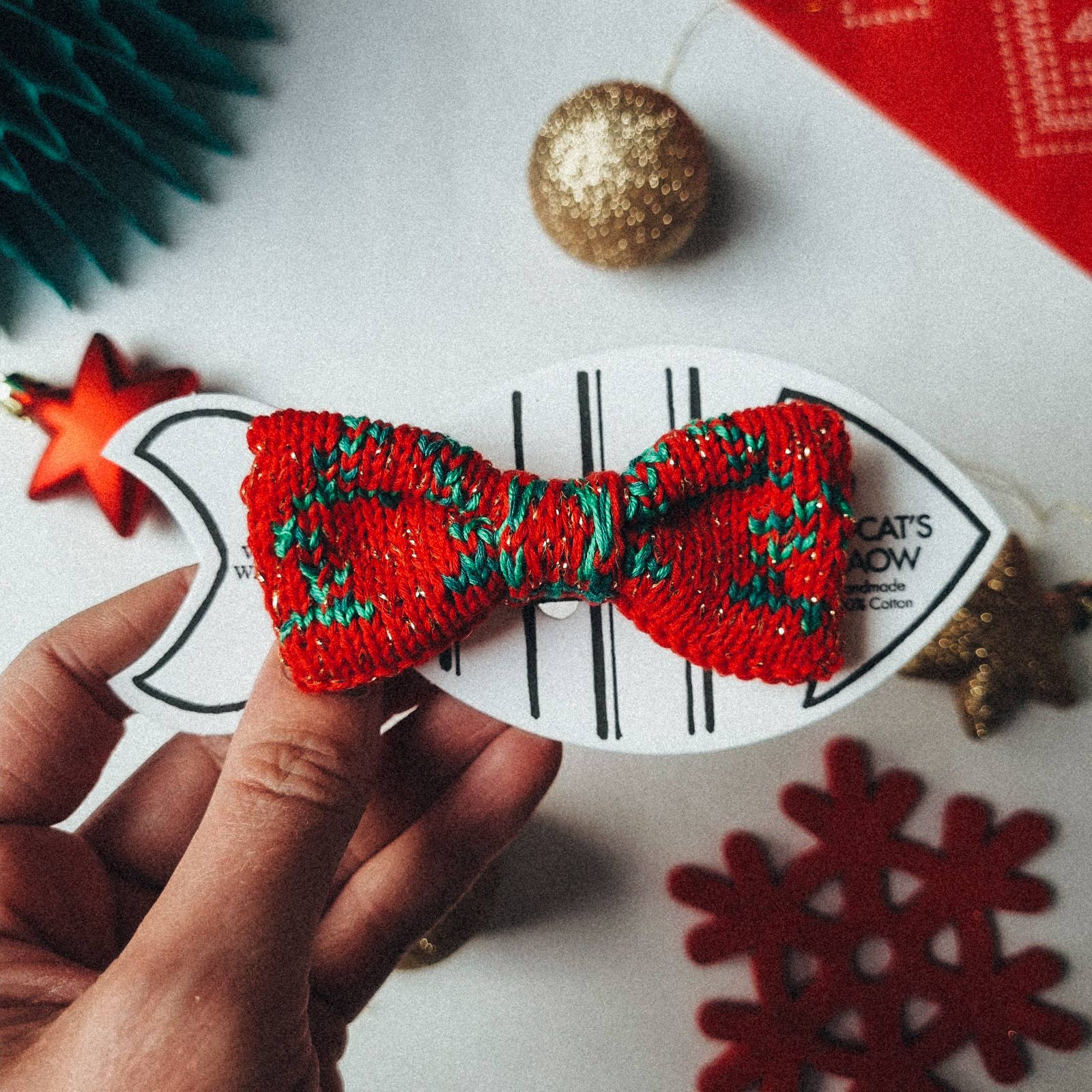 Un'etichetta Smile Sparking Pet Papillon dell'inaspettata etichetta di maglieria, Wool & Water. Ogni papillon è progettato e lavorato a maglia in fibre naturali e sostenibili da Alice nel suo studio di giardino di Amsterdam. Una quantità significativa di filato proviene da importanti case di design che normalmente lo manderebbero in discarica. Fatto a mano, edizione limitata e approvato dagli animali domestici. Per animali domestici con personalità .