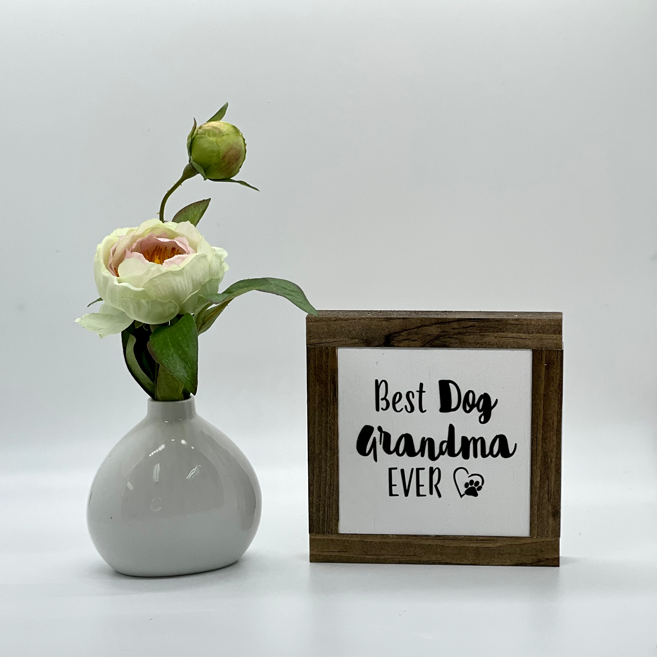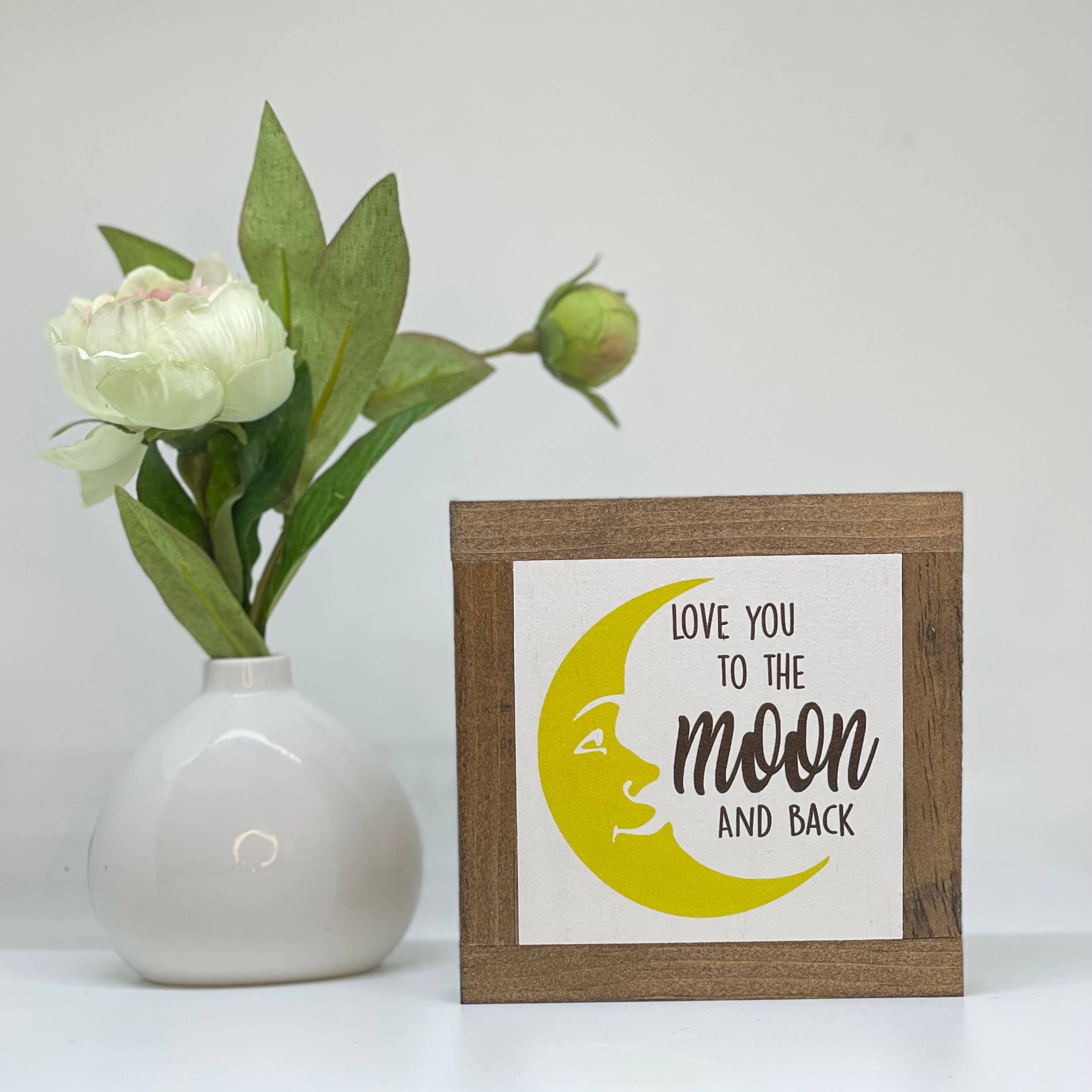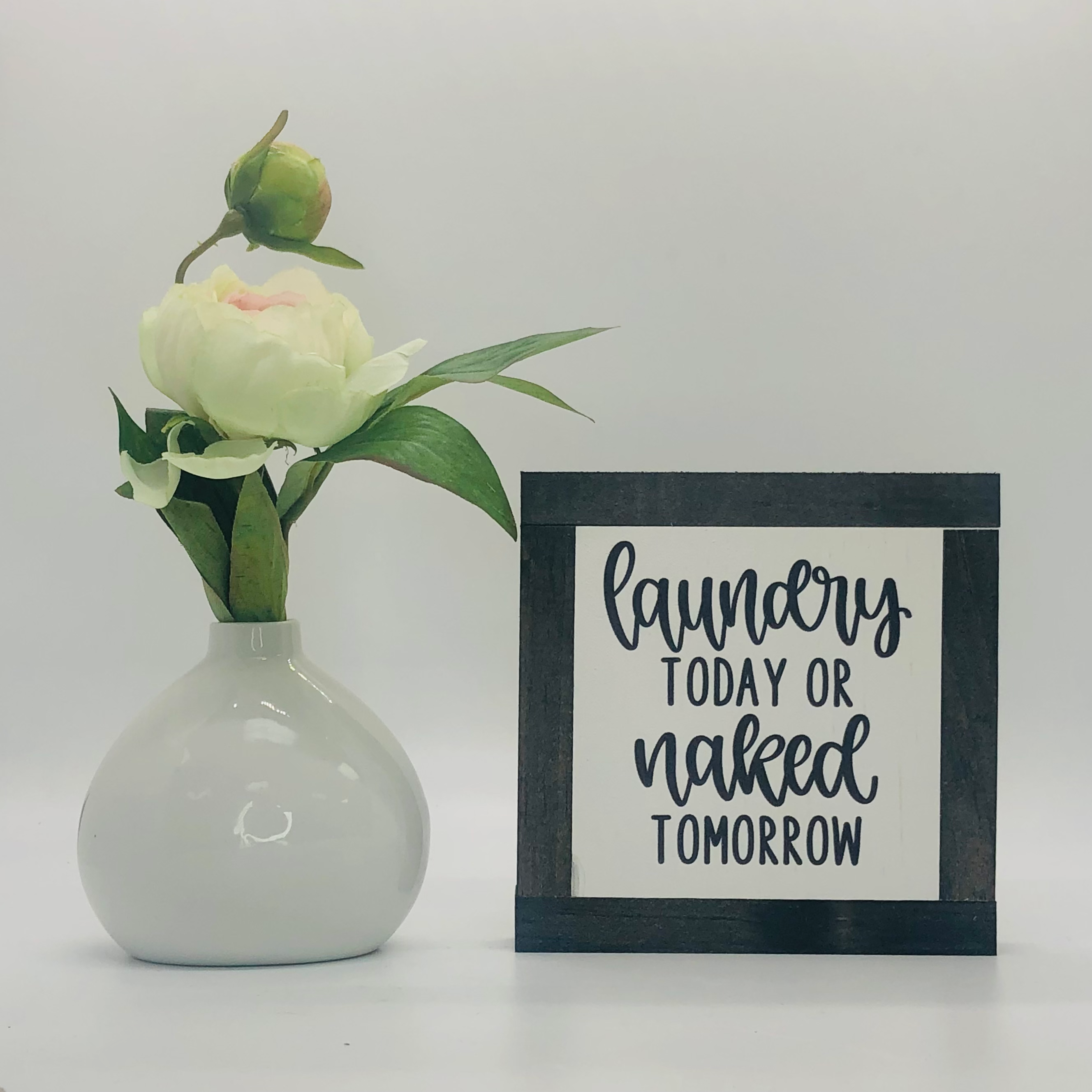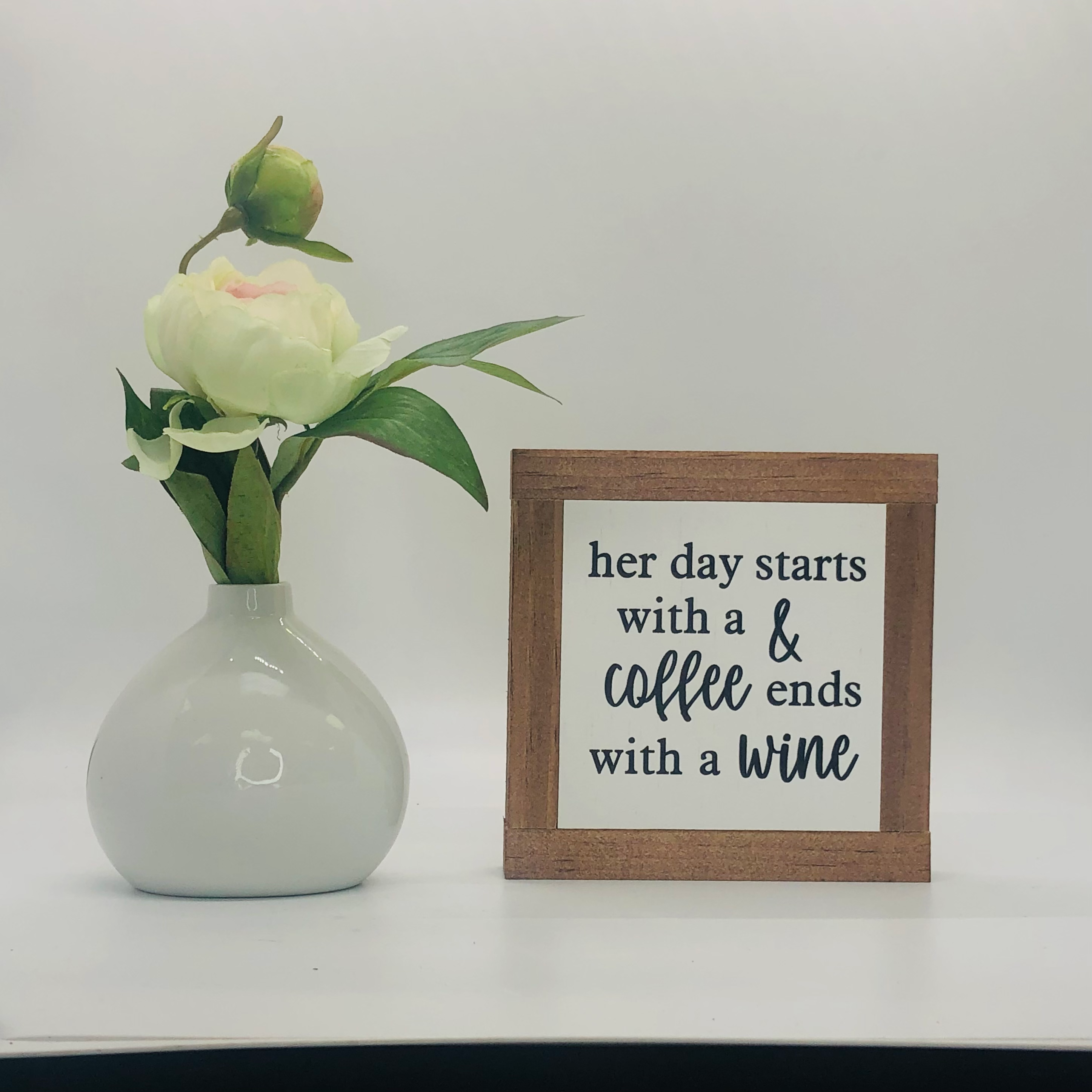 Gli articoli BOG ROAD DESIGNS sono interamente realizzati nel nostro Brick & Mortar situato a Downtown Concord, New Hampshire. Il telaio e lo sfondo sono realizzati a mano con legname locale, levigato e tinto secondo le specifiche. Le frasi sono stampate direttamente sullo sfondo bianco dipinto per un pezzo di lunga durata. Quello che una volta è iniziato nella nostra casa di Bog Road è diventato una bellissima storia. Speriamo di far parte della tua storia offrendo diverse frasi e rimarremo made in USA. Crediamo fermamente che tu sia l'autore del tuo spazio abitativo, dovrebbe raccontare la tua storia. Offriamo la dimensione perfetta per decorare un vassoio a più livelli, autoportante su uno scaffale o aggiunto a un cesto regalo. Sono il regalo perfetto per amici e familiari. Godetevi! - Famiglia BRD