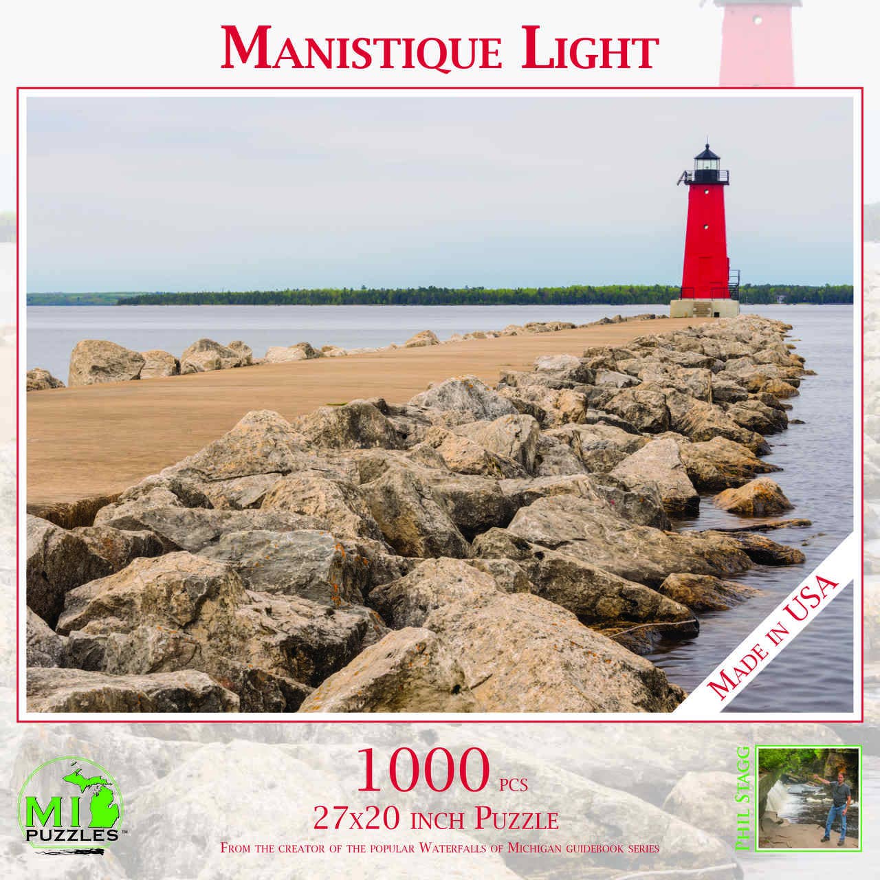 Ciao! Sono Phil Stagg. Nel 2009 ho iniziato a fotografare le cascate del Michigan. Dopo 9 anni avevo scritto 5 guide che forniscono un sacco di informazioni su oltre 600 cascate del Michigan. Vendiamo migliaia di questi libri ogni anno. Dopo aver aggiunto altri articoli souvenir da vendere nei nostri negozi (cartoline, portachiavi, spille, tiretti per cerniere, magneti, ecc.) Mi è stato chiesto dei puzzle. Quindi nel 2018 ho iniziato con 8 disegni di puzzle. Sono davvero decollati! Ora abbiamo circa 300 modelli in stock con quasi 125.000 puzzle nei nostri magazzini. Cosa troverai nella nostra linea di puzzle? Ricordi. Produco design che evocano una risposta emotiva. Ho avuto così tanti clienti che mi hanno detto che erano fidanzati in questo faro o in quella cascata. Che si fermano sempre su quel ponte mentre sono in vacanza. Che questo è il loro animale preferito. Quindi vendo ricordi. Cose che i clienti possono apprezzare e che possono apprezzare. Ti invito a unirti agli oltre 500 altri negozi in tutto il paese che vendono i nostri prodotti MADE IN AMERICA. Siete sempre i benvenuti a contattarmi personalmente in caso di domande. (231) 920-8416 Phil Stagg