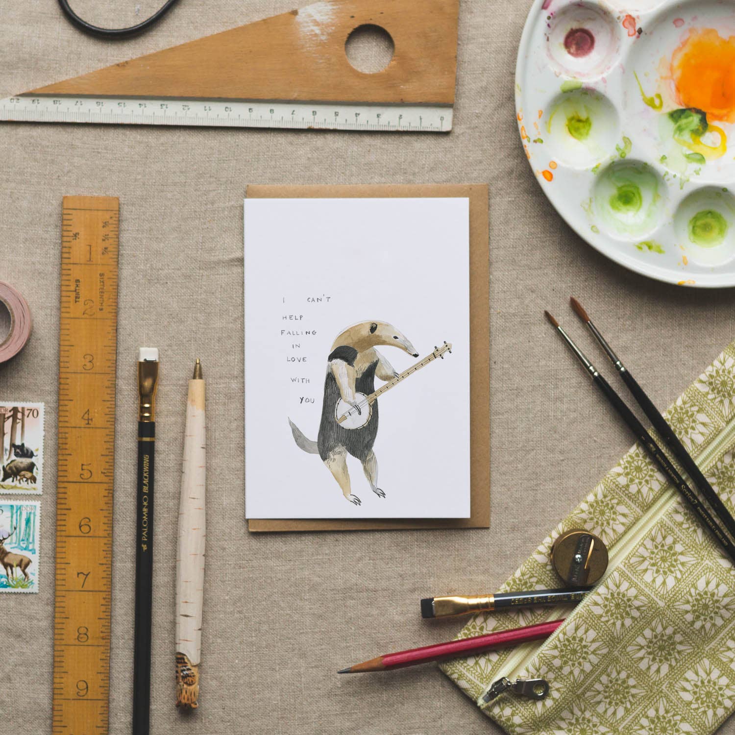 Ogni prodotto Caro Prudence inizia con Laura che prende le sue pitture, le sue matite, i pastelli e altro ancora. Uno studio pulito, silenzioso e ordinato permette alle idee di passare alle pagine vuote dei quaderni... i piccoli personaggi stravaganti che Laura evoca, le texture che cattura e i dettagli che nota saranno successivamente digitalizzati e trasformati in cartoline, calendari, quaderni, pronti per essere inviati al mondo. Messaggi d'amore e di congratulazioni, ringraziamenti di cuore e parole per rallegrare per compleanni e giorni di nozze, che si dirigono in tutto il mondo, verso le case e le mani calde. Il potere della carta, della penna e del timbro e il potere degli intenti - tutto nel cuore della Cara Prudenza, tutto nel cuore stesso di Laura. Carte Prudence sono realizzate con i migliori cartoncini, provenienti da foreste sostenibili. Usiamo buste riciclate e ora offriamo imballaggi privi di violoncello.
