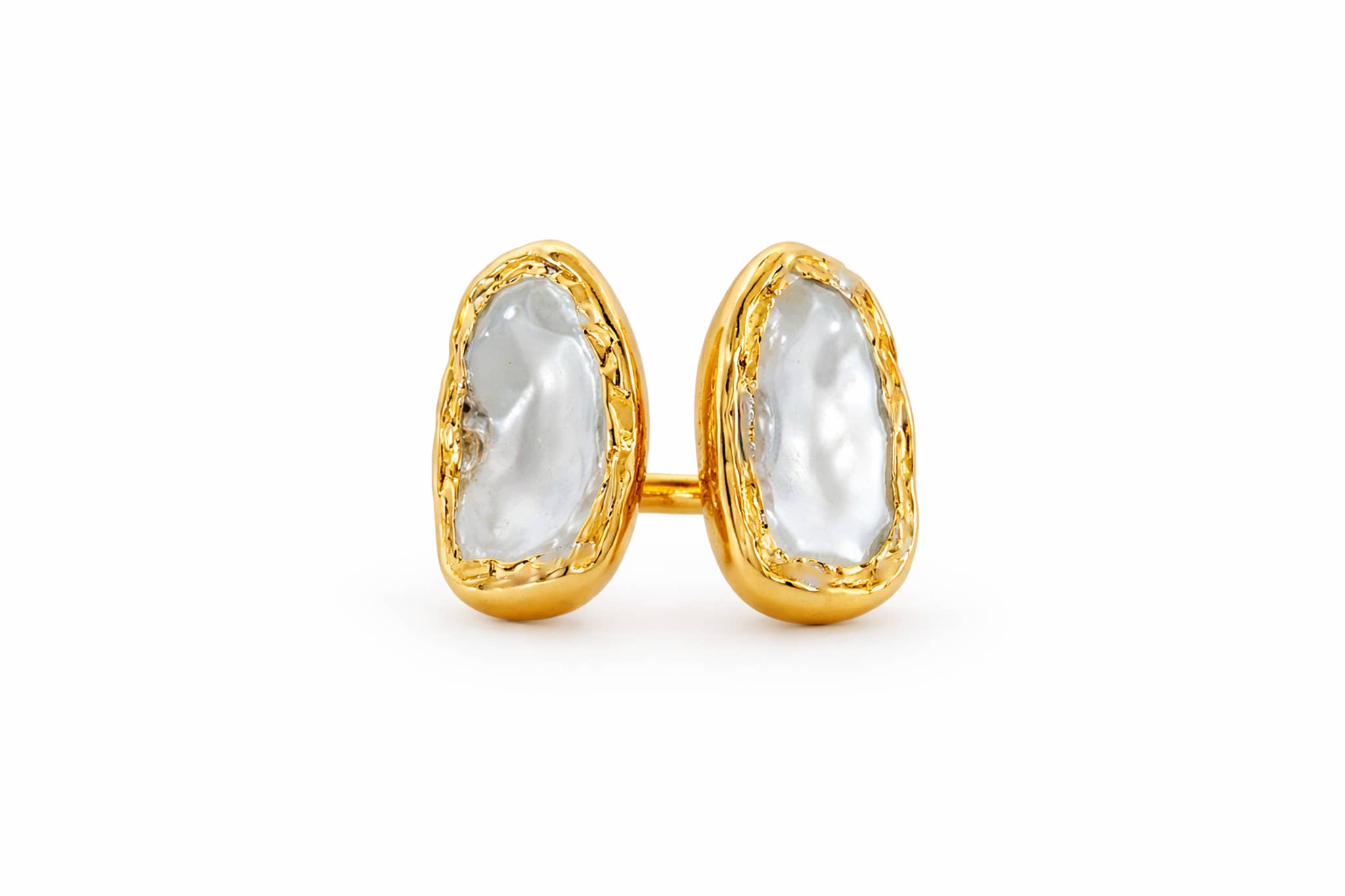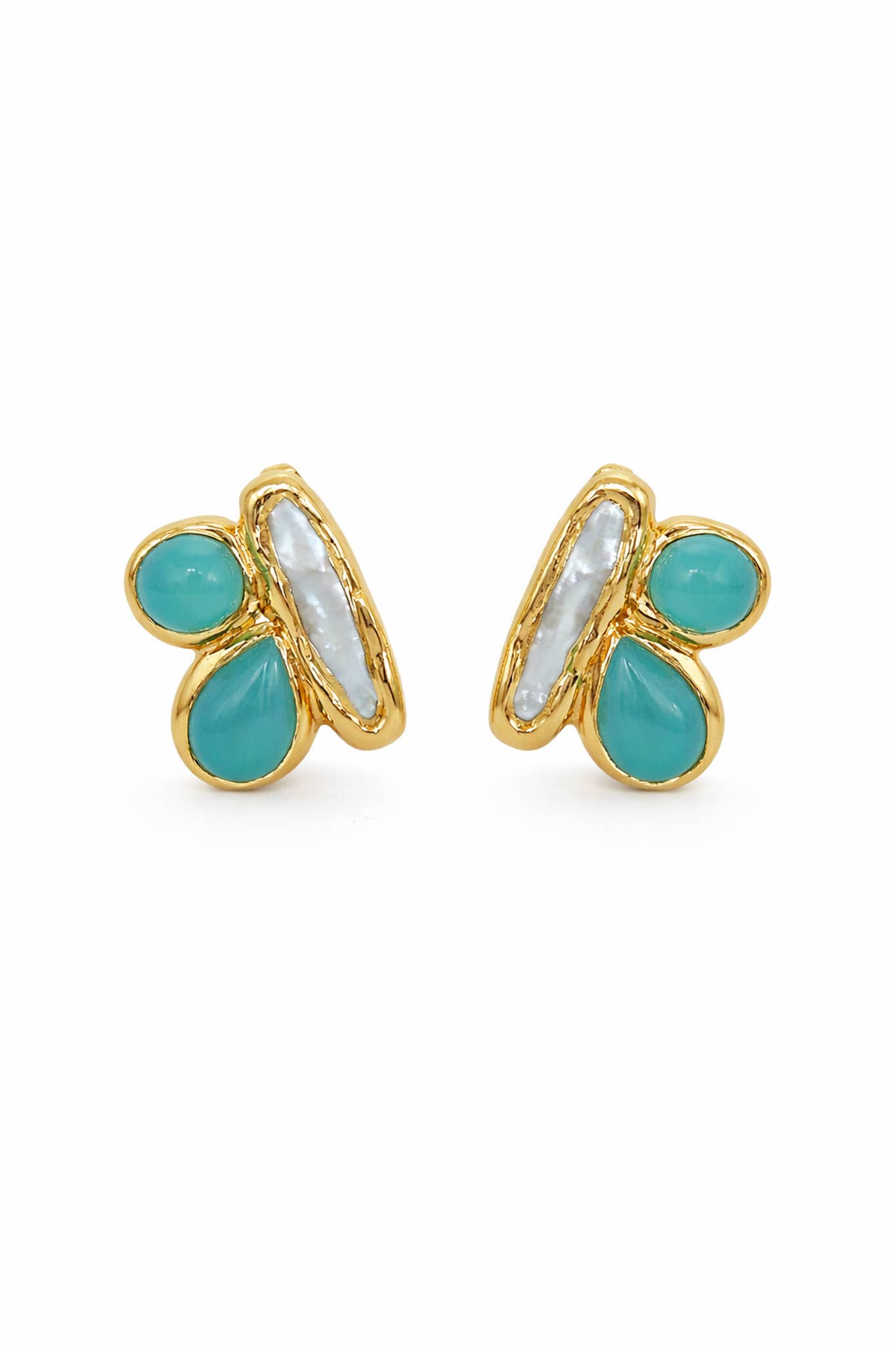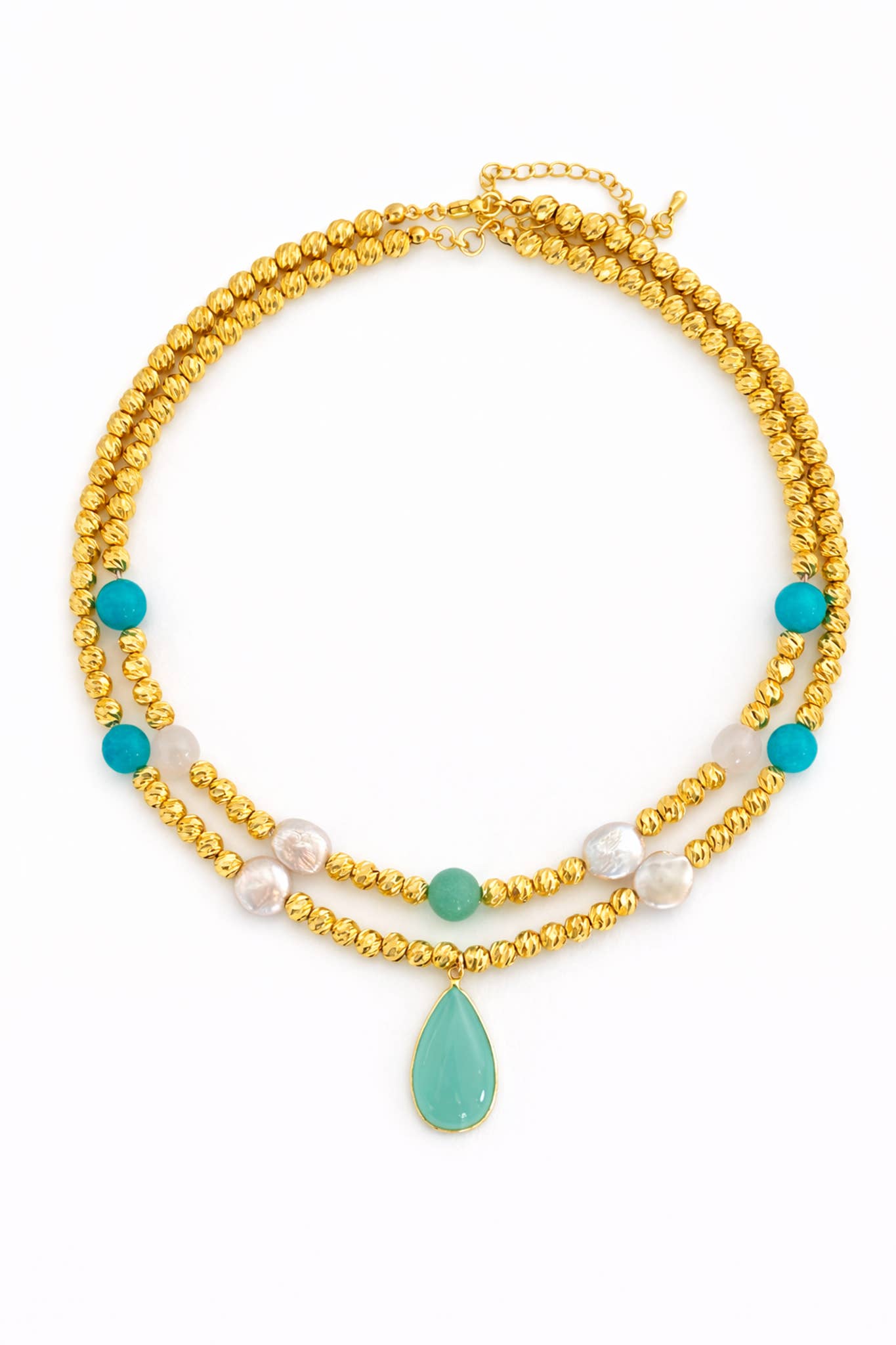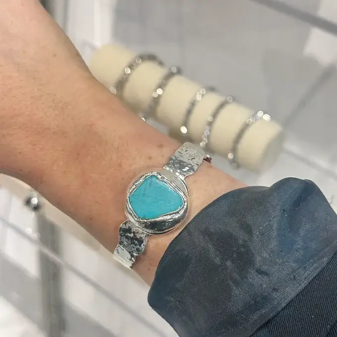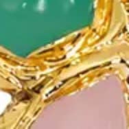 Pietre semipreziose fatte a mano immerse in oro 18 carati. Con anelli, ciondoli, collane e orecchini; non esistono due pezzi uguali.