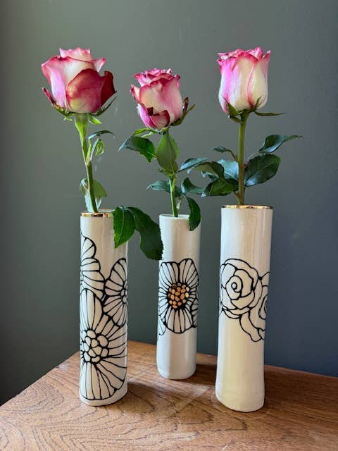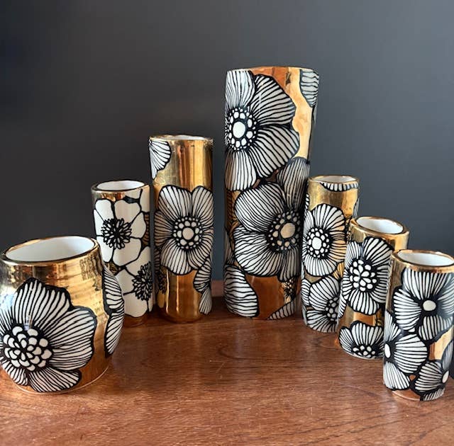 Nicole Hsieh crea ceramiche senza tempo, fatte a mano, che portano un senso di quieta nostalgia e storia vissuta. Influenzata da un'infanzia negli anni '70 circondata da antiquariato, trame vintage e forme ereditate, il suo lavoro evoca il calore e l'intimità degli oggetti tramandati attraverso le generazioni. Ogni pezzo è adornato con delicati fiori disegnati a mano—Dalie, Cornus, Rose—e delicatamente baciato da una lucentezza in oro a 22 carati, aggiungendo un tocco di opulenza ai rituali quotidiani. Realizzati lentamente e intenzionalmente, i suoi vasi celebrano l'imperfezione, l'individualità e la bellezza delle cose fatte a mano. Hsieh descrive le sue ceramiche come pezzi che sembrano aver già vissuto una vita—pieni di anima, duraturi e destinati a essere tenuti, usati e ricordati.