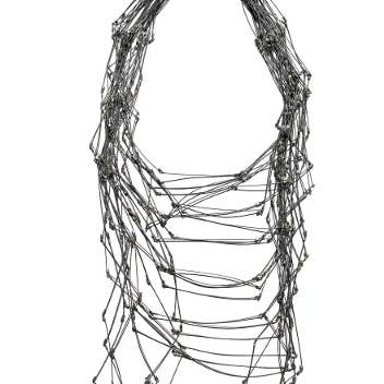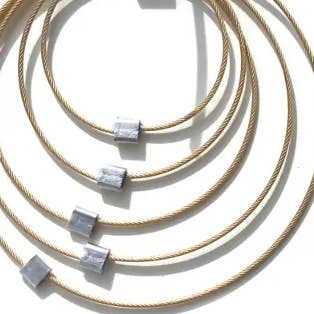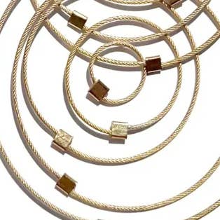 Ogni pezzo MPR Jewelry di Meghan Patrice Riley è fabbricato a mano nell'MPR Atelier di Brooklyn, New York da artisti e fabbri qualificati. Mescolando metalli con tecniche tessili, sperimento materiali classici ed elementari come il nostro classico cavo in acciaio inossidabile rivestito in nylon mescolato con metalli pregiati e pietre semipreziose per reinterpretarli per creare gioielli scultorei e contemporanei, femminili, lussuosi e affascinanti, oltre che progettato per garantire vestibilità e durata. Lavoriamo con cavi in acciaio inossidabile rivestiti in nylon rivestito in metalli pregiati come oro giallo 24 carati e argento sterling. Questo piccolo cavo sembra un filo, ma in realtà è di 49 fili in miniatura intrecciati insieme per creare un cavo in acciaio inossidabile miniaturizzato simile a un monofilo che è morbido come un tessuto ma ha un nucleo di acciaio super resistente. Il processo di fabbricazione del cavo è simile a quello dei cavi per ponti sospesi progettati per muoversi con le piastre di spostamento della terra in modo da non collassare ma oscillare con il movimento.