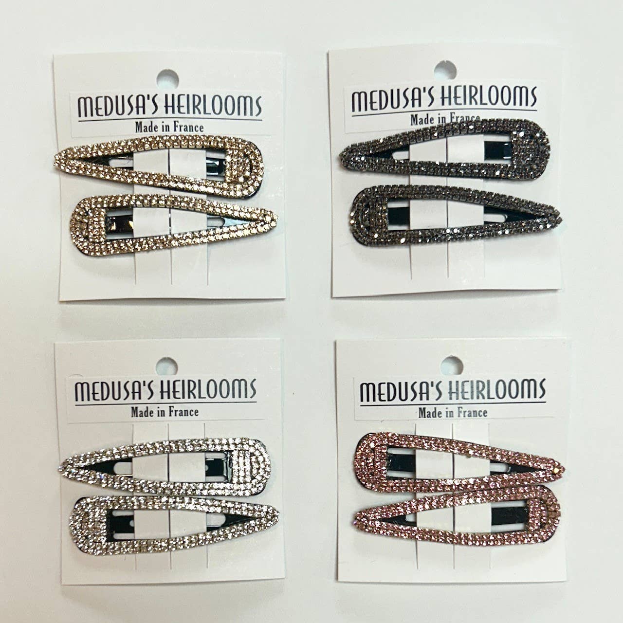 Medusas Heirlooms, fondata nel 1972 da Kathryn Hausman, è un grossista con sede a New York che si specializza in accessori per capelli francesi e gioielli in cristallo Swarovski. La collezione include clip per yoga, pinze, fermagli, elastici per capelli e cerchietti, tutti realizzati in Francia in acetato acrilico (plastica francese). Medusa ha una rappresentazione storica importante nella moda. Medusa è stata presente in oltre 2.000 riviste editoriali dagli anni '80 fino ad oggi. Vendiamo anche a boutique, spa e negozi specializzati a livello globale! La collezione è alta moda ma classica, la qualità è eccellente e il prezzo è giusto! "Abbiamo un accessorio per ogni tipo di donna con qualsiasi tipo di capelli."