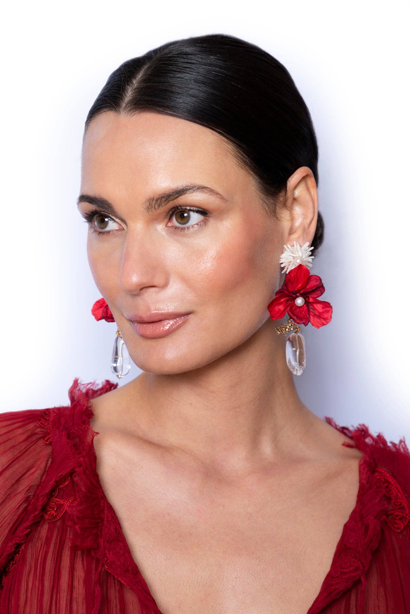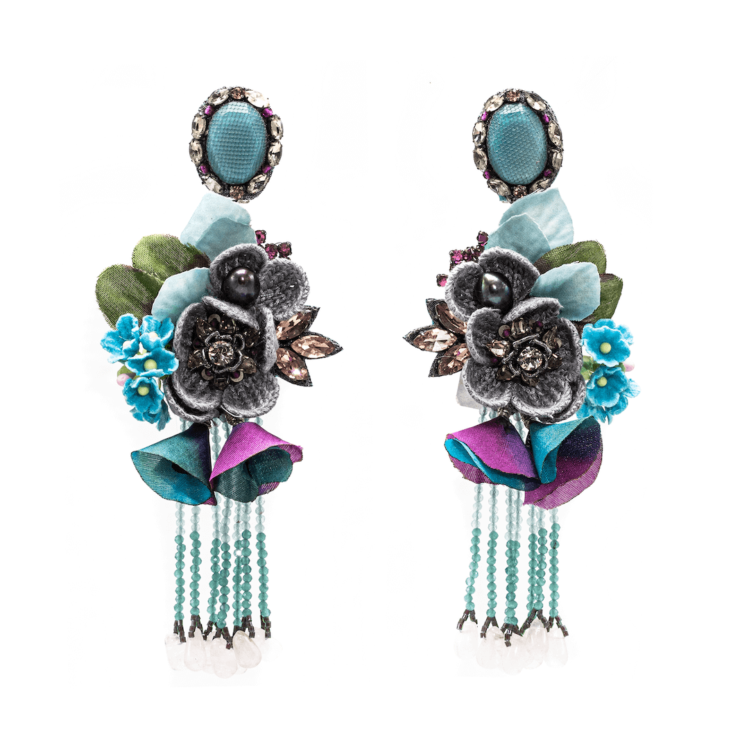 Ranjana Khan (RK) ha fondato il suo marchio di gioielli nel 2008 dopo oltre due decenni di lavoro nel settore della moda couture. RK possedeva e gestiva Phoenix Hand Embroidery, un'azienda di ricamo su misura, destinata ad Alexander McQueen, Jean Paul Gaultier Couture, Valentino, Jil Sander e Armani Privé, tra gli altri. Ha inoltre collaborato con Lanvin per creare le iconiche collane di perle avvolte in tulle che sono state viste su tutta la passerella. Gli orecchini RK sono un mix di materiali morbidi e duri, con forme organiche e spazi negativi. Questi orecchini enfatizzano materiali naturali come perle barocche, conchiglie a spirale, piume morbide e ali di scarabeo iridescenti, a cui vengono aggiunti altri componenti come perline vintage, cristalli Swarovski o pietre semipreziose. I gioielli Ranjana Khan sono fatti per distinguersi. I nostri clienti desiderano pezzi unici, sia per un evento importante che per un abbigliamento casual quotidiano. Gli orecchini sono decorati con un eclettico assortimento di materiali progettati per rimanere leggeri e creare movimenti dinamici sull'orecchio.