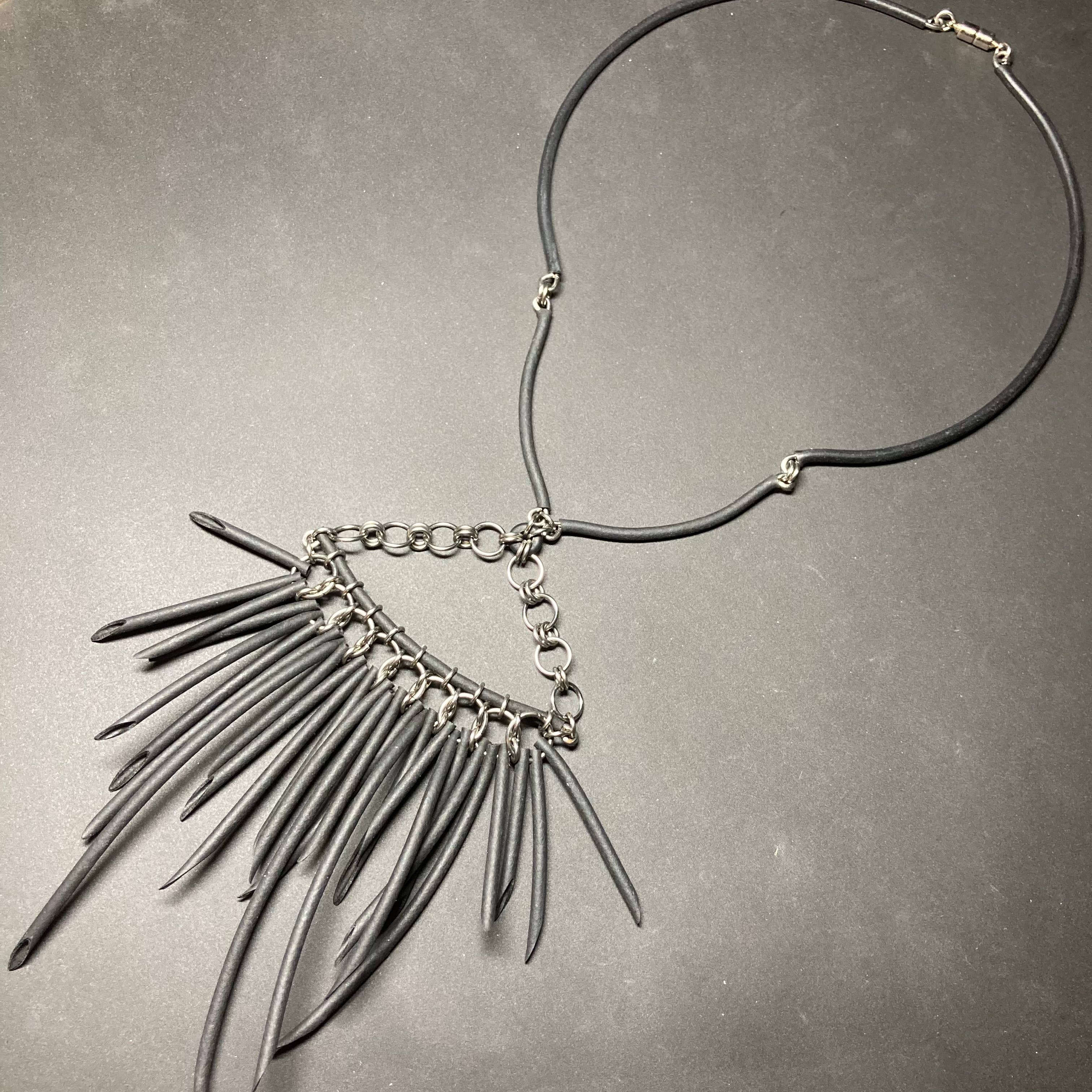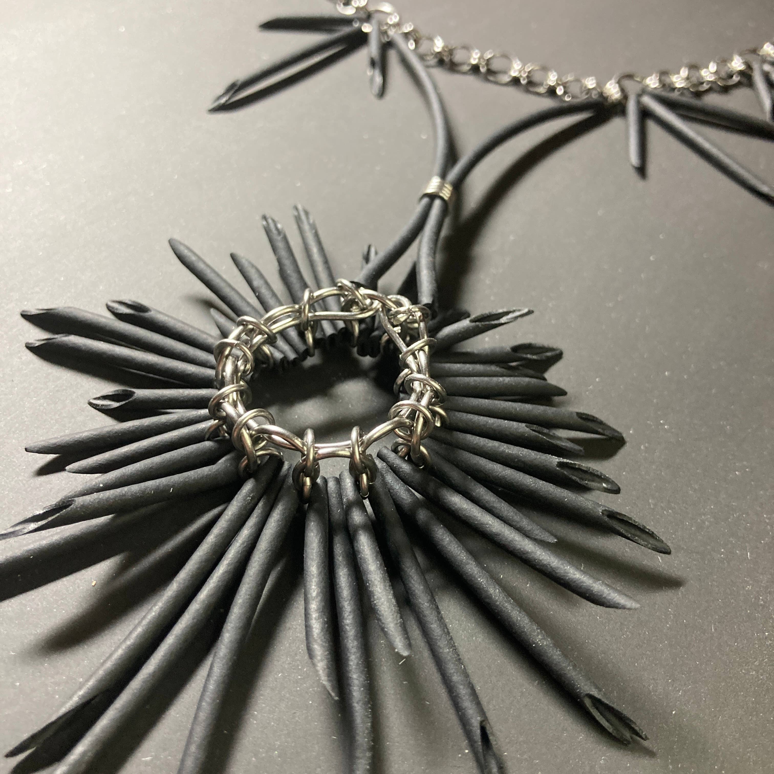 I gioielli cablati e la moda fanno una dichiarazione. La fondatrice Melissa Kolbusz progetta opere d'arte indossabili fatte a mano da materiale industriale recuperato e in eccesso Il recupero di componenti, come il filo colorato dell'alternatore, i tubi e i transistor, le mode (cablate) uniche nel loro genere e in edizione limitata funzionano con progetti sul futuro. Il colore, la consistenza e la malleabilità dei materiali trovati guidano il design di ogni pezzo e favoriscono sfide compositive diverse rispetto ai materiali tradizionali.