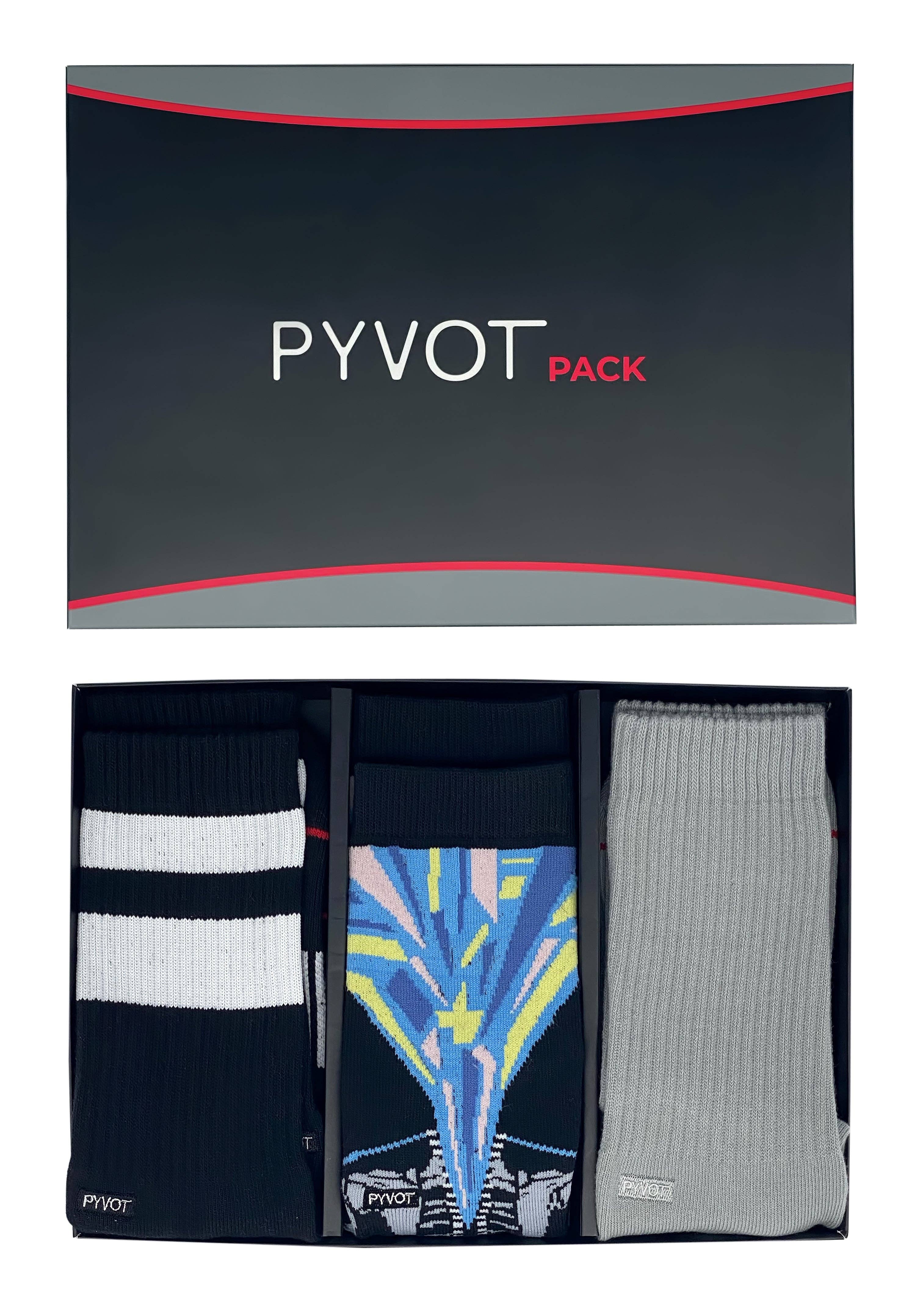 Pyvot è nata con l'idea di creare una calza che potesse essere un vero complemento alla moda, con modelli di artisti di tutto il mondo che possono essere mescolati e abbinati a diversi outfit e look. Poi siamo rimasti affascinati dai componenti interni della calza responsabili del comfort e del sostegno. La combinazione di queste due passioni, insieme ad anni di test e progettazione, ci ha portato a diversi nuovi miglioramenti dei materiali che offrono un nuovo livello di stile e comfort in ogni paio di calze Pyvot. Ci impegniamo a utilizzare fibre e materiali naturali di altissima qualità nelle nostre calze. Pyvot utilizza filati di cotone pettinato super morbidi e tecnologia agli ioni d'argento che fornisce proprietà antimicrobiche e traspiranti, mantenendo i piedi asciutti tutto il giorno. Per garantire il massimo comfort, abbiamo progettato una compressione Pillow Press che si adatta al tuo piede, dandoti il supporto che meriti. Le nostre calze grafiche rappresentano una partnership tra noi e artisti con sede a livello locale e globale.