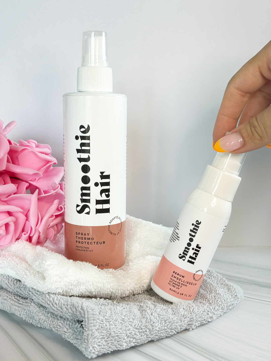 Mi chiamo Elodie, sulla trentina, madre di due bambini piccoli e fondatrice di Smoothie Hair. Detto questo, vuoi sicuramente sapere da dove viene questo progetto? Tutto è iniziato durante il lockdown nel 2020. Mi è sempre piaciuto prendermi cura dei miei capelli, andavo regolarmente in salone per fare vari trattamenti. Solo che, come tutti gli altri, il lockdown ha cambiato tutte le mie abitudini. Mi sono ritrovata a casa per settimane, con i saloni chiusi e la mia vita di mamma da gestire allo stesso tempo, senza poter fare le lisciature. Allora ho voluto fare questo trattamento da sola, da casa. Tuttavia, mi sono subito reso conto che era davvero difficile trovare prodotti che soddisfacessero le mie aspettative: o erano troppo tossici, o troppo costosi o non abbastanza efficaci. È stato allora che ho deciso di lanciare la mia linea di prodotti per la cura della pelle. Tuttavia, la creazione di formulazioni richiede ricerca e sviluppo, nonché competenze chimiche avanzate. Così ho scelto di farmi accompagnare da un laboratorio. Tutti i nostri prodotti sono fabbricati e confezionati secondo gli standard dell'UE. Tutti i nostri prodotti sono registrati sul portale CPNP, un portale che consente di notificare i prodotti cosmetici online, in conformità al regolamento cosmetico n. 1223/2009. Dopo molte ricerche, ho finalmente trovato: prodotti naturali e non nocivi, un risultato perfetto, un risparmio di tempo e denaro! Elodie