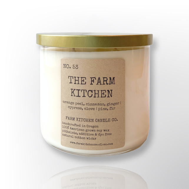 Alla Farm Kitchen Candle Co. pratichiamo la tradizionale produzione di candele, saldamente all'incrocio tra arte e scienza. Crediamo che... * i migliori ingredienti producono le migliori candele. * l'attenzione ai dettagli e la qualità artigianale sono importanti. * non dovresti sacrificare la tua salute per goderti le candele. * le candele sono davvero uno dei piccoli lussi della vita che dovrebbe essere abbastanza abbordabile da godere ogni giorno! Le nostre candele vengono versate alla «vecchia maniera»... in piccoli lotti e a mano. Utilizziamo solo i migliori ingredienti: * 100% cera di soia coltivata internamente * fragranze fini infuse con olio essenziale * stoppini in puro cotone o legno naturale non trattato Farm Kitchen Candle Co. si trova a Coburg, in Oregon ed è una vera piccola azienda a conduzione familiare. Possediamo e gestiamo un negozio fisico in cui le nostre candele sono realizzate a mano in loco... offrendo ai nostri clienti un'esperienza unica.