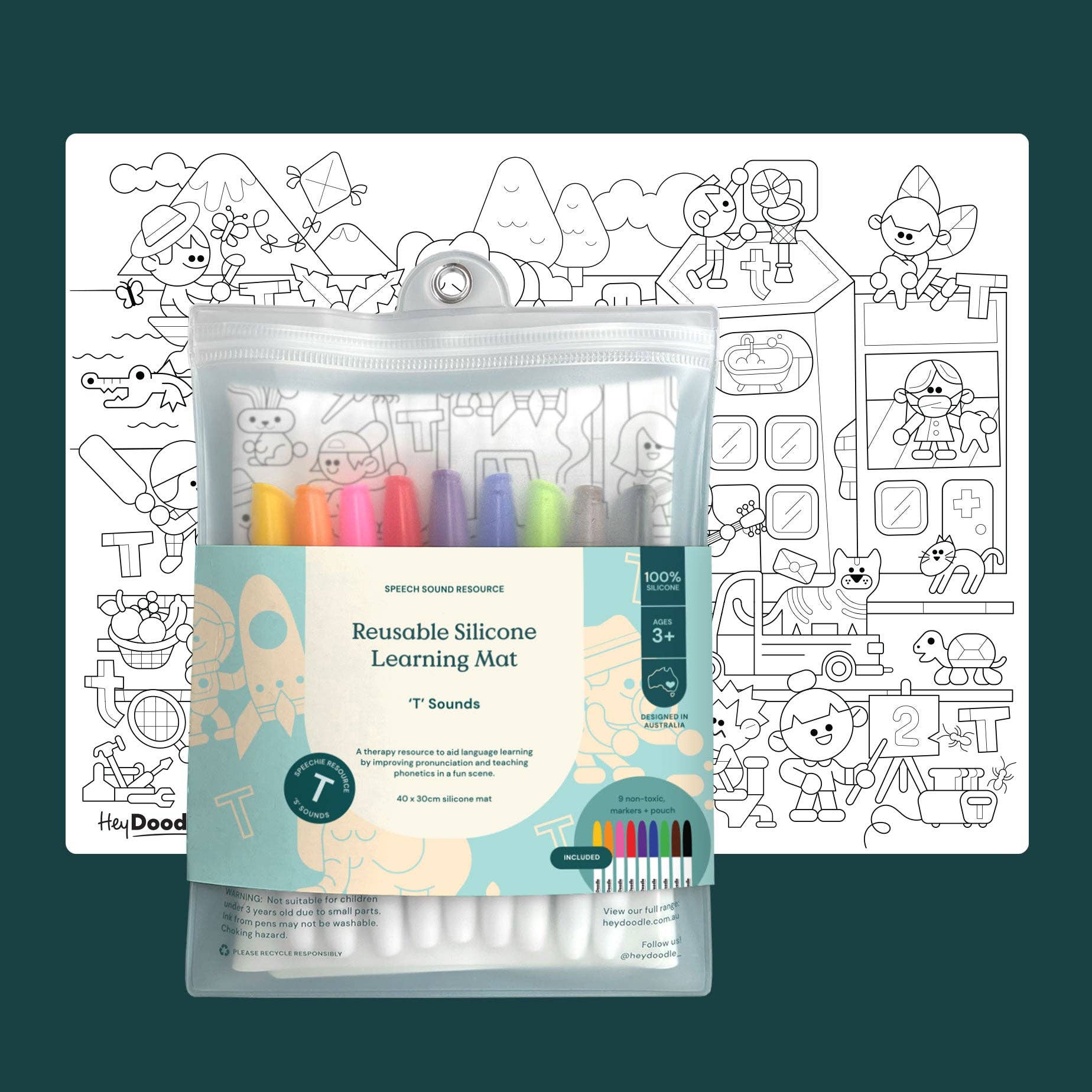 *Colore > Trace > ERASE > Repeat > Pack-N-Go! * HeyDoodle è nata dall'iniziativa di una mamma di intrattenere i suoi 2 piccoli mentre cercava di finire in pace la sua prima (forse terza) tazza di caffè. L'idea di una tela in silicone riutilizzabile, ma abbastanza leggera da poter essere portata ovunque, era semplicemente troppo geniale per essere lasciata sola. Man mano che i suoi figli crescevano, aumentava anche la gamma di design di HeyDoodle per soddisfare attività di apprendimento e creative più coinvolgenti. Ciò che era iniziato come un piccolo seme di un'idea è cresciuto oltre ogni aspettativa man mano che disegnavamo la nostra strada da seguire, un tappetino in silicone alla volta.