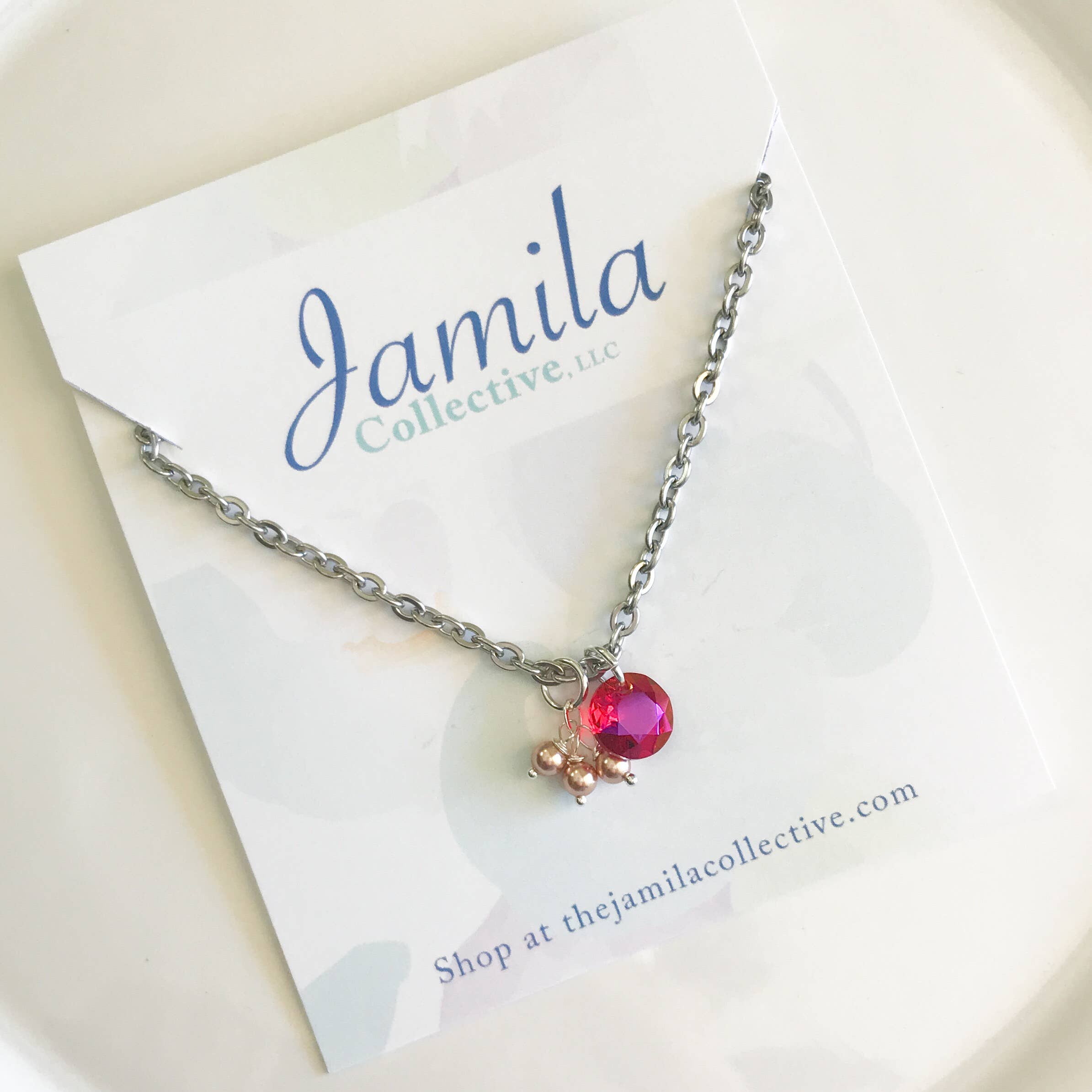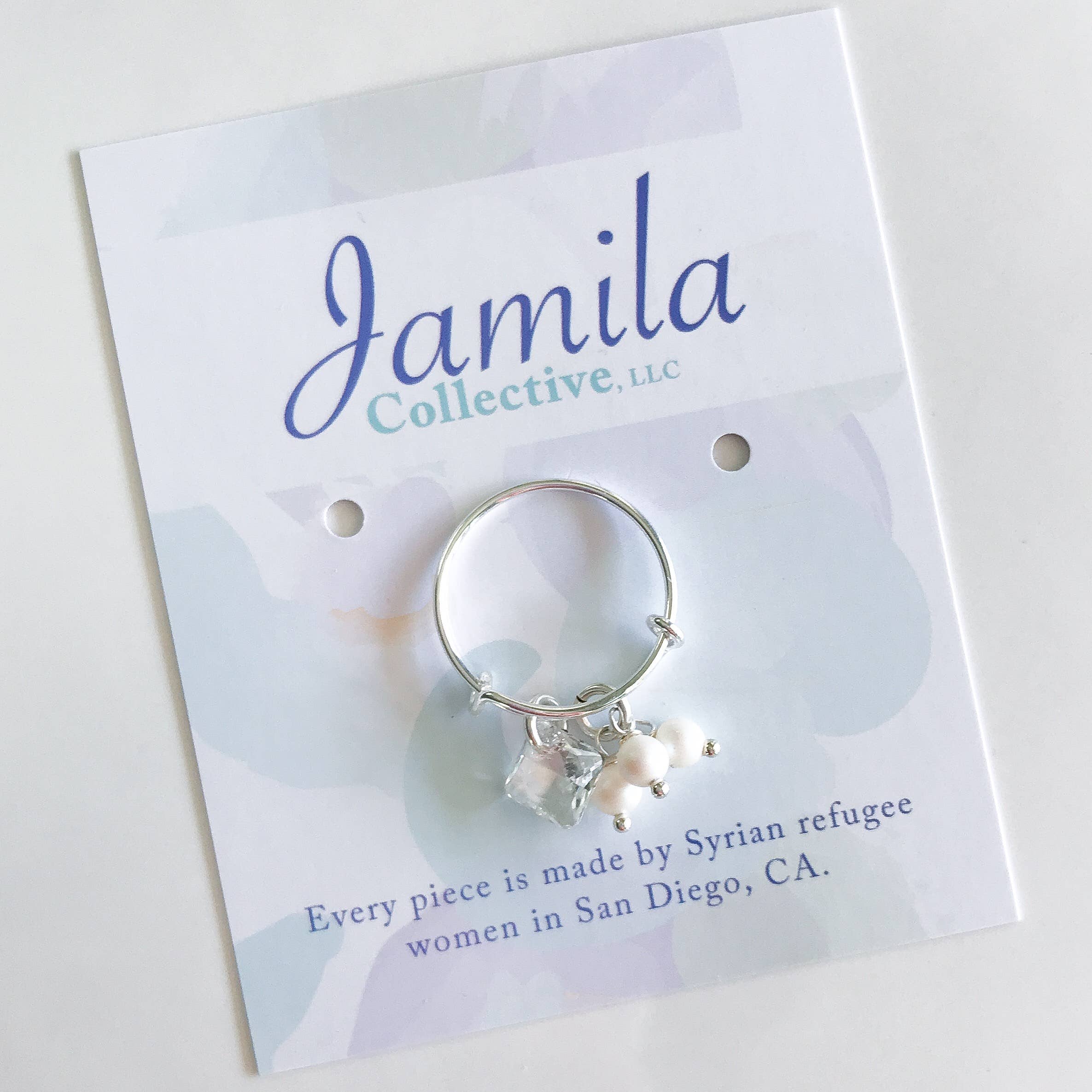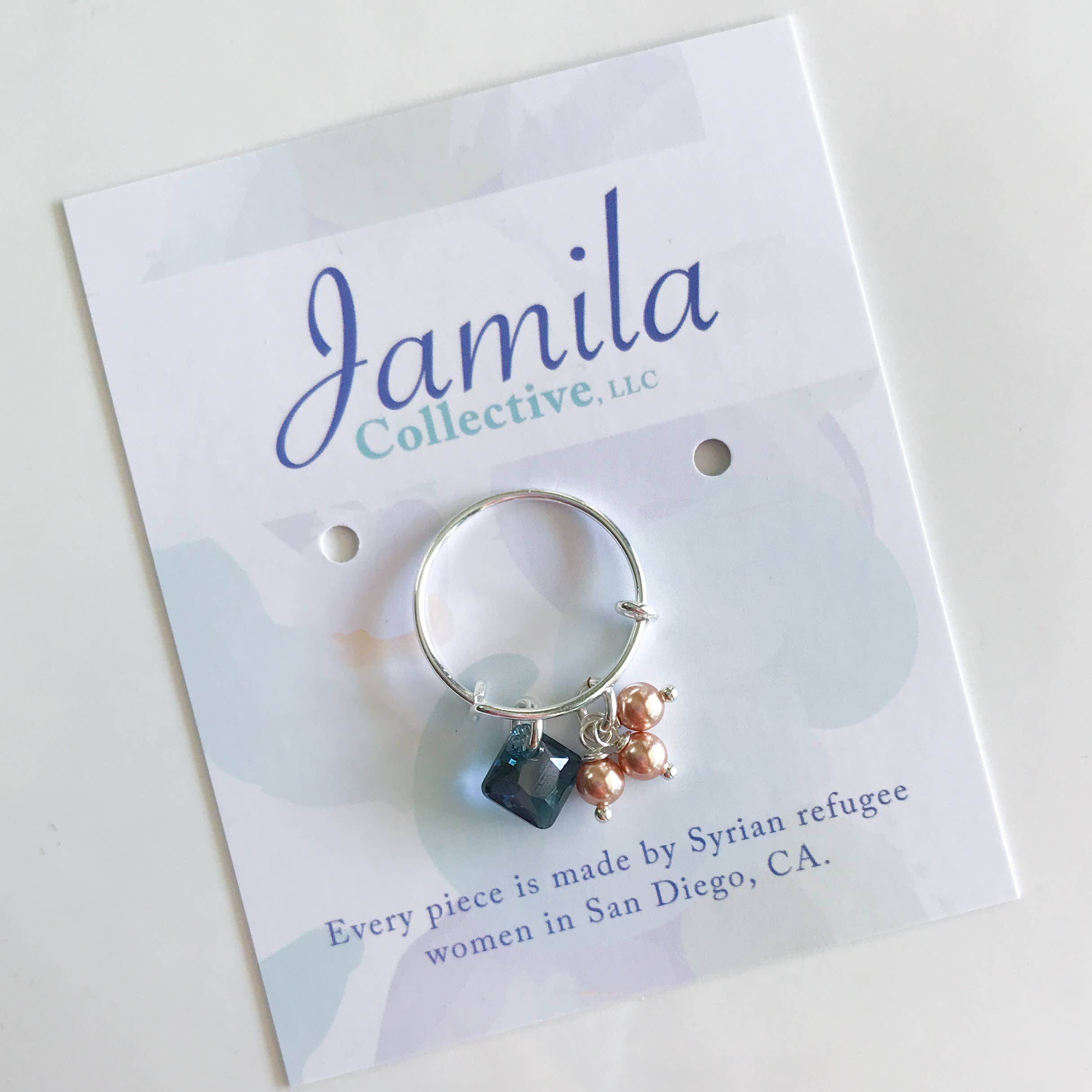 Dopo aver collegato con la comunità locale dei rifugiati siriani a San Diego all'inizio del 2017, la designer Megan Reynolds ha trovato «il suo popolo». Ora, le donne di queste famiglie di rifugiati devono entrare nella forza lavoro per la prima volta. Megan lavora con queste donne per sviluppare competenze e produrre tutti i disegni di gioielli per Jamila Collective. Si tratta di più di bei gioielli. Ognuno dei nostri cristalli Swarovski, perla, argento sterling e acciaio inossidabile è senza tempo, ma moderno. Il mix di acciaio inossidabile, perline scintillanti e perle luccicanti rende i nostri pezzi unici. Ogni pezzo prende il nome da un rifugiato siriano che Megan come incontrato. Ogni pezzo è realizzato da uno dei nostri quattro rifugiati siriani che attualmente lavorano con noi. Ogni pezzo viene fornito con una carta creatrice che racconta la storia delle donne che hanno realizzato il pezzo.