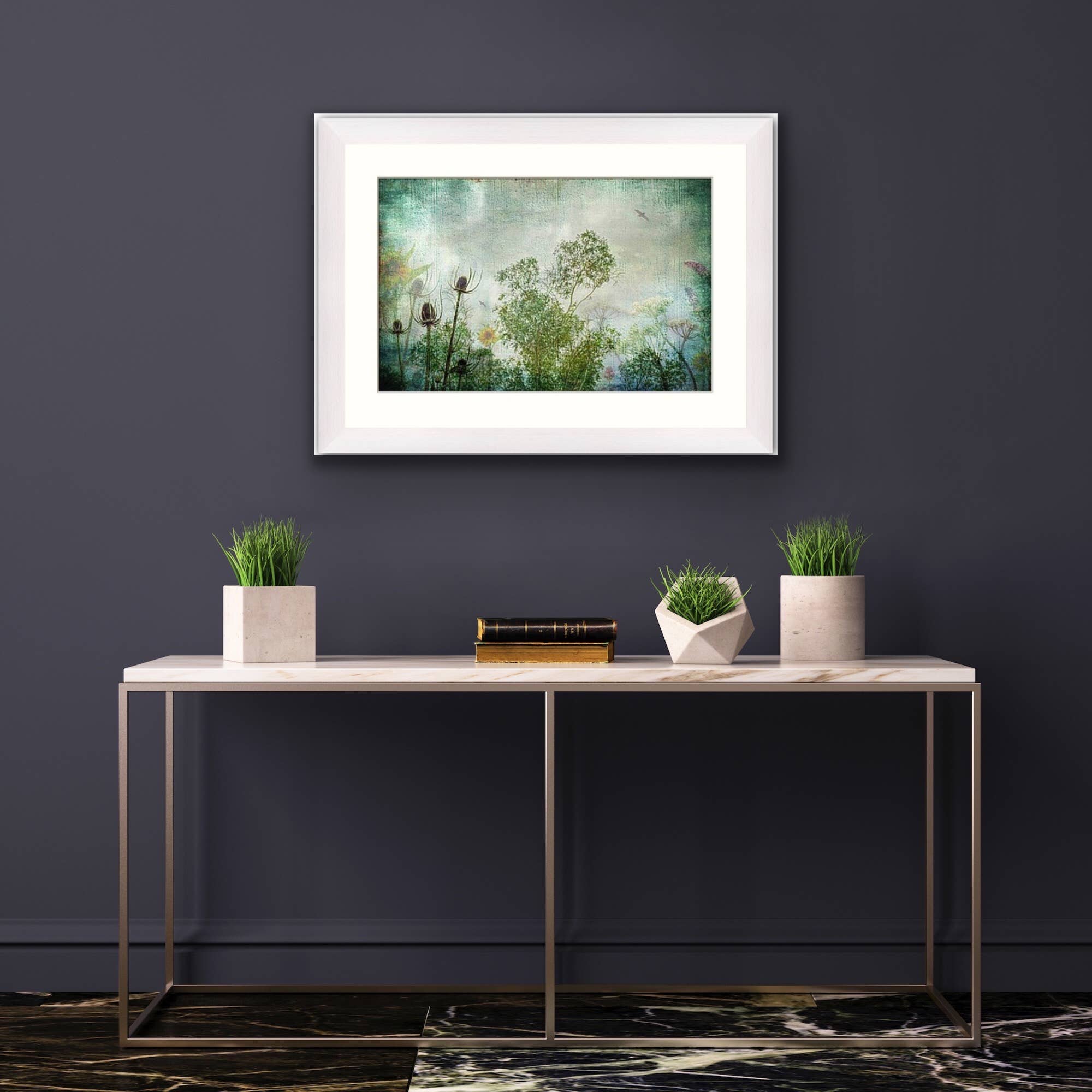 Pip Carlton-Barnes crea sia opere d'arte multimediali che compositi per fotografia d'arte nel suo piccolo e accogliente studio in Cornovaglia, sotto l'occhio attento dei suoi fedeli assistenti di studio «Flower» e «Denzil» the Collies. Combinando arte ad acquerello, illustrazione, ciottoli, vetri burattati e conchiglie, Pip dà vita a personaggi stravaganti o aggiunge tocchi colorati di vetro marino ai giardini floreali ad acquerello e ai paesaggi sottomarini. Le sue belle opere d'arte composite riuniscono gli splendidi elementi della costa della Cornovaglia e i vasti paesaggi verdi.