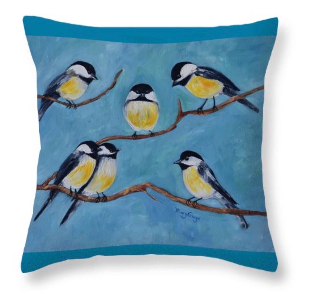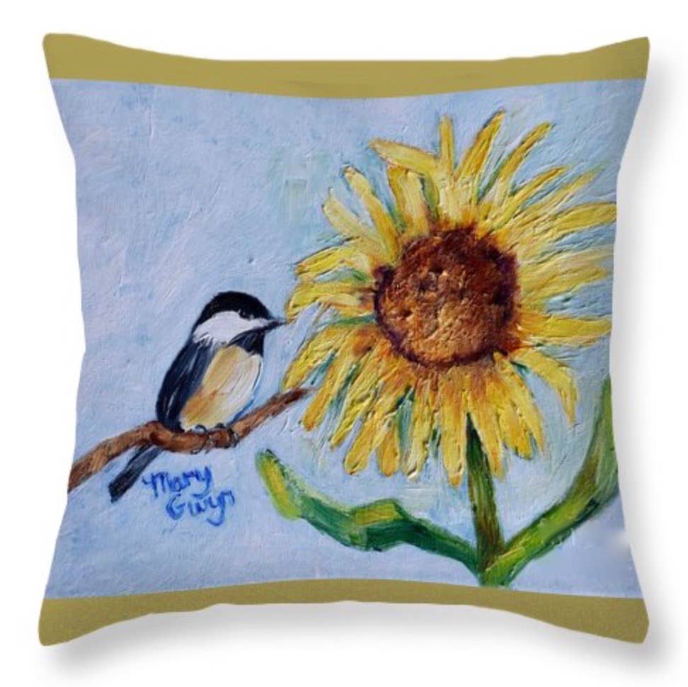 Come artista ed educatore d'arte con sede in Tennessee, uccelli e fiori come ispirazione mi riportano a quella parte magica dell'infanzia quando i ceci chiacchierano e le viole del pensiero sembrano gattini. È naturale che siano al centro della mia arte. Un bel girasole non è solo un fiore, ma una ballerina che segue la luce del sole con curve e voltezze. Da bambino di 6 anni, mentre era in isolamento in ospedale con il morbillo, mio zio mandò vasi di viole del pensiero dal suo giardino per farmi compagnia, dicendomi che erano facce da gattino. Ad oggi, non riesco a guardare una viola del pensiero e non vedere la faccia di un gattino che sbircia indietro. Mia nonna e mia prozia mi raccontavano storie degli uccelli mentre li guardavamo inghiottire le briciole che abbiamo buttato in giardino per loro. Mi hanno insegnato le loro diverse personalità mentre abbiamo inventato nomi per loro, come Charley, Chickadee e Freddie Finch. Spero che ogni cuscino, borsa o altro oggetto con un dipinto di un uccello o di un fiore diventi fonte di gioia per chi lo compra. Forse anche loro vedranno il volto di un gattino o sentiranno le chiacchiere di una cacchetta. Forse daranno un nome al loro sacchetto di girasole e inventeranno una storia a riguardo. Forse un luminoso cuscino colibrì ispirerà qualcuno a canticchiare una melodia felice.