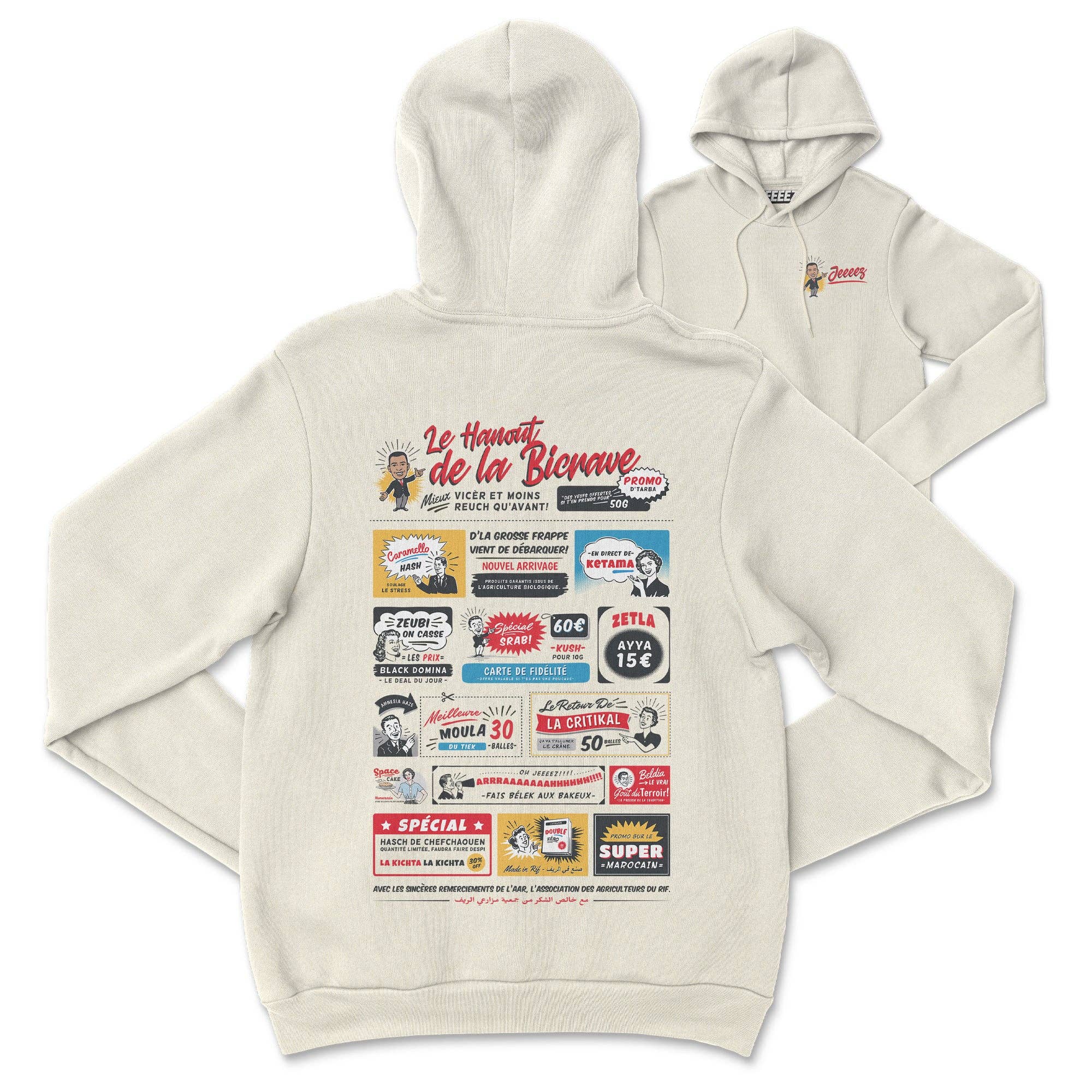 JEEEEZ è il nuovo marchio di streetwear di Parigi con un tono sovversivo che mette in risalto la creatività street. La sua ispirazione deriva infatti dalla ricchezza del multiculturalismo e dalle sue influenze come l'hip hop, la street art e i suoi nuovi modi di espressione. E questo è ciò che rende tutta l'autenticità del marchio che fotografa l'identità della nostra generazione sui tessuti. La maggior parte dei nostri disegni è stampata su cotone biologico al 100% e materiali riciclati.