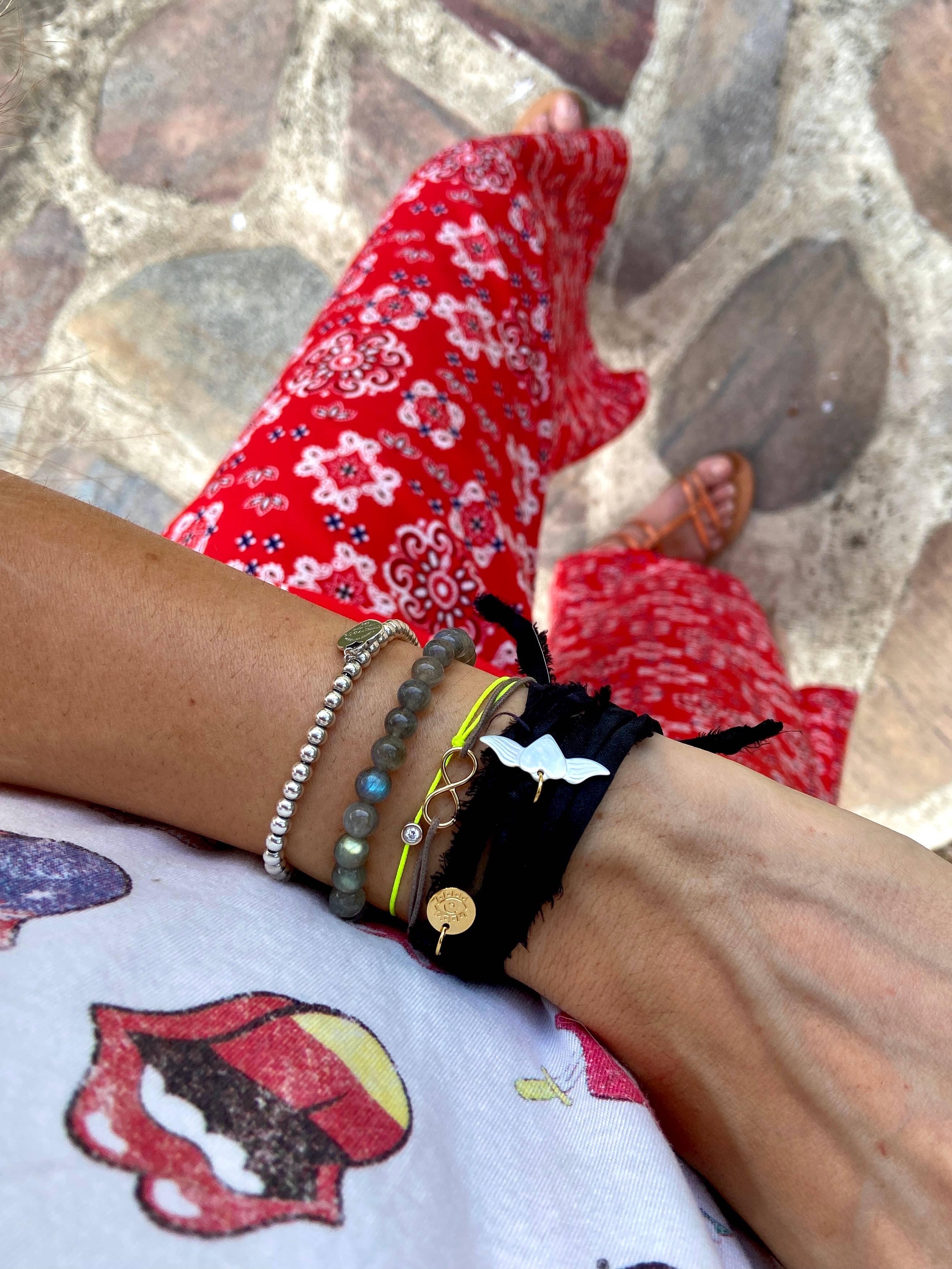 • Sun of Lo • Un piccolo pezzo di sole che non ti lascerà mai, un portafortuna unico carico di ricordi, un talismano che farà vibrare il tuo cuore e riscalderà la tua anima... I nostri gioielli sono stati immaginati per te attraverso i viaggi e la scoperta di nuove culture. Ognuno di essi porta un significato particolare, che prenderà tutto il suo senso una volta che lo indosserai. Le nostre collezioni sono realizzate con i materiali più belli che la natura possa offrirci: madreperla iridescente delicatamente scolpita a mano dai nostri artigiani, ma anche pietre semipreziose dai mille colori, provenienti dai quattro angoli del mondo. Il nostro impegno si estende anche alla valorizzazione dei rifiuti prodotti dall'uomo, come per i nostri nastri di seta colorata, derivati dagli scarti generati dalla fabbricazione dei sari tradizionali in India. Tutti i nostri pezzi sono realizzati a mano con amore nel nostro laboratorio nel sud della Francia. Da accumulare senza moderazione, secondo i tuoi desideri, per colorare la tua vita ☀️