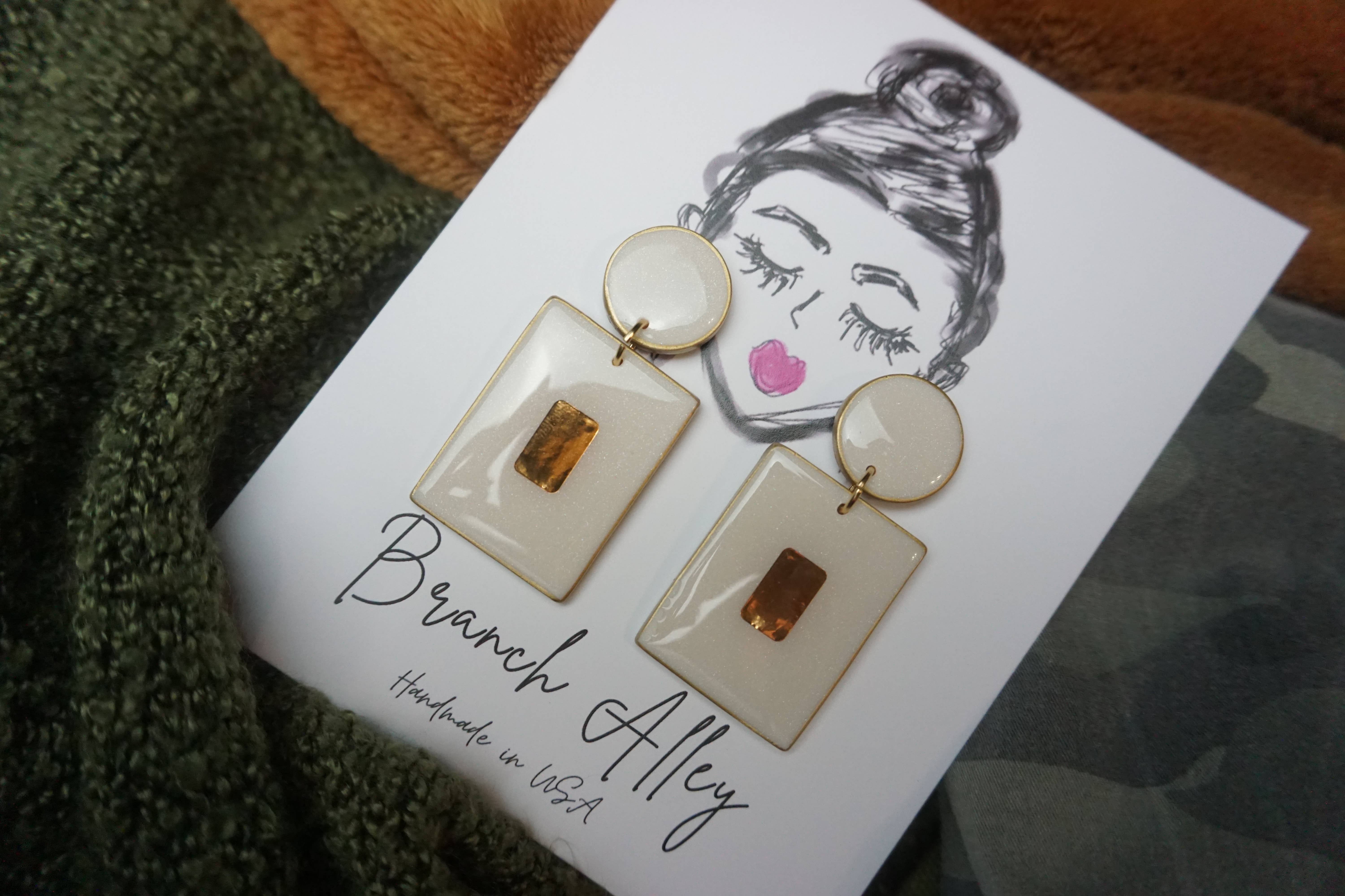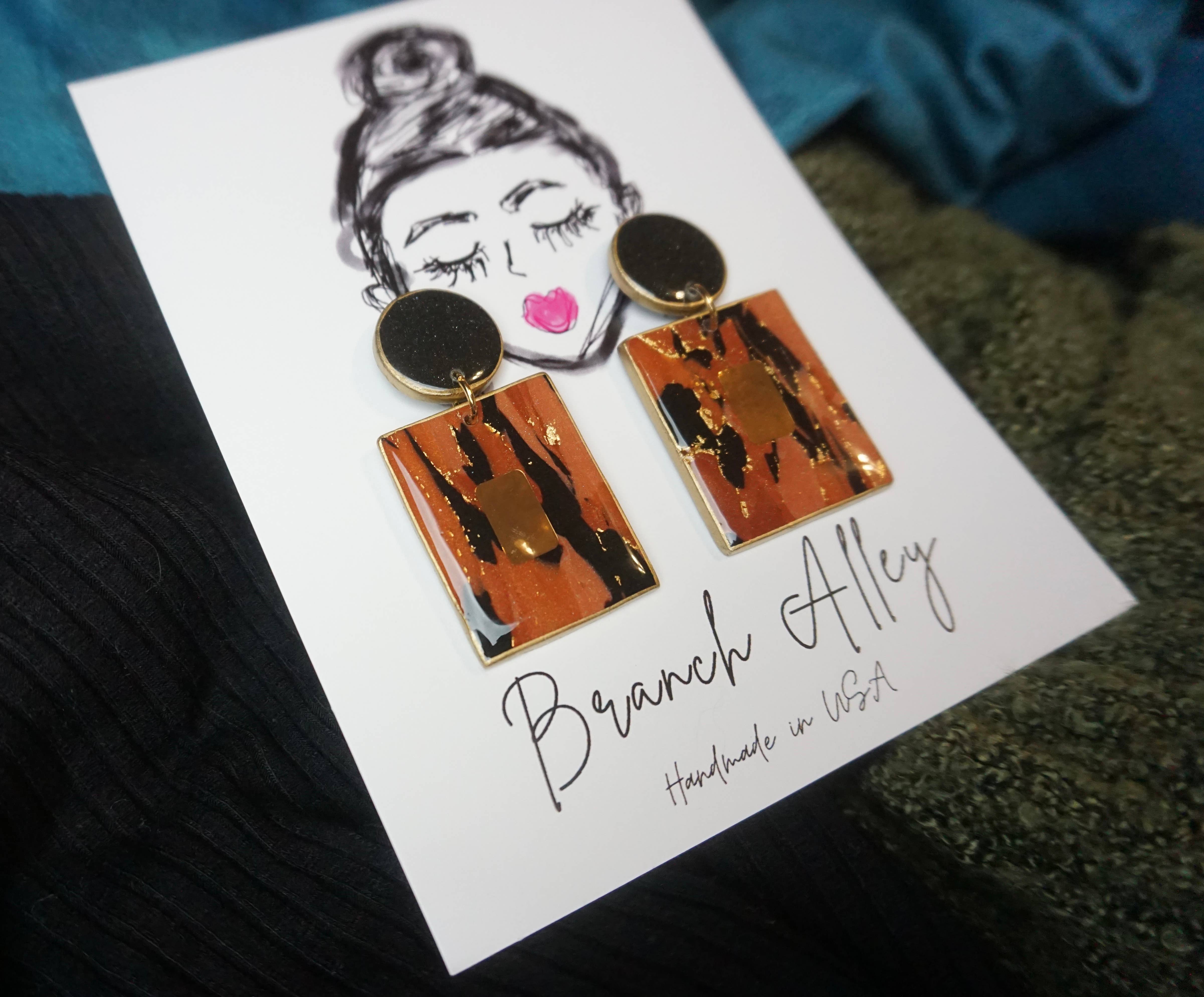 «Abiti per le tue orecchie». Est. 2018. Il nome è Branch Alley e fare orecchini è il mio gioco. Quando vuoi aggiungere al tuo look splendido o ravvivare il tuo abbigliamento semplice, puoi trovare un orecchino per questo qui. Completamente fatti a mano con argilla e altre materie prime, i miei orecchini sono piccoli pezzi d'arte creati con un processo lento e in piccoli lotti. Tutti i pali sono in acciaio inossidabile chirurgico e altri accessori come i ganci sono placcati in oro e sempre privi di nichel. Branch Alley è uno spettacolo per una donna di una mamma single di 4, Cherish Wright, che ha creato la sua attività da un angolo della sua piccola casa di città creando divertenti orecchini per illuminare i suoi occhi stanchi e il panino della mamma. (Ancora considerata una gemma nascosta perché non ha ancora partecipato a una fiera)