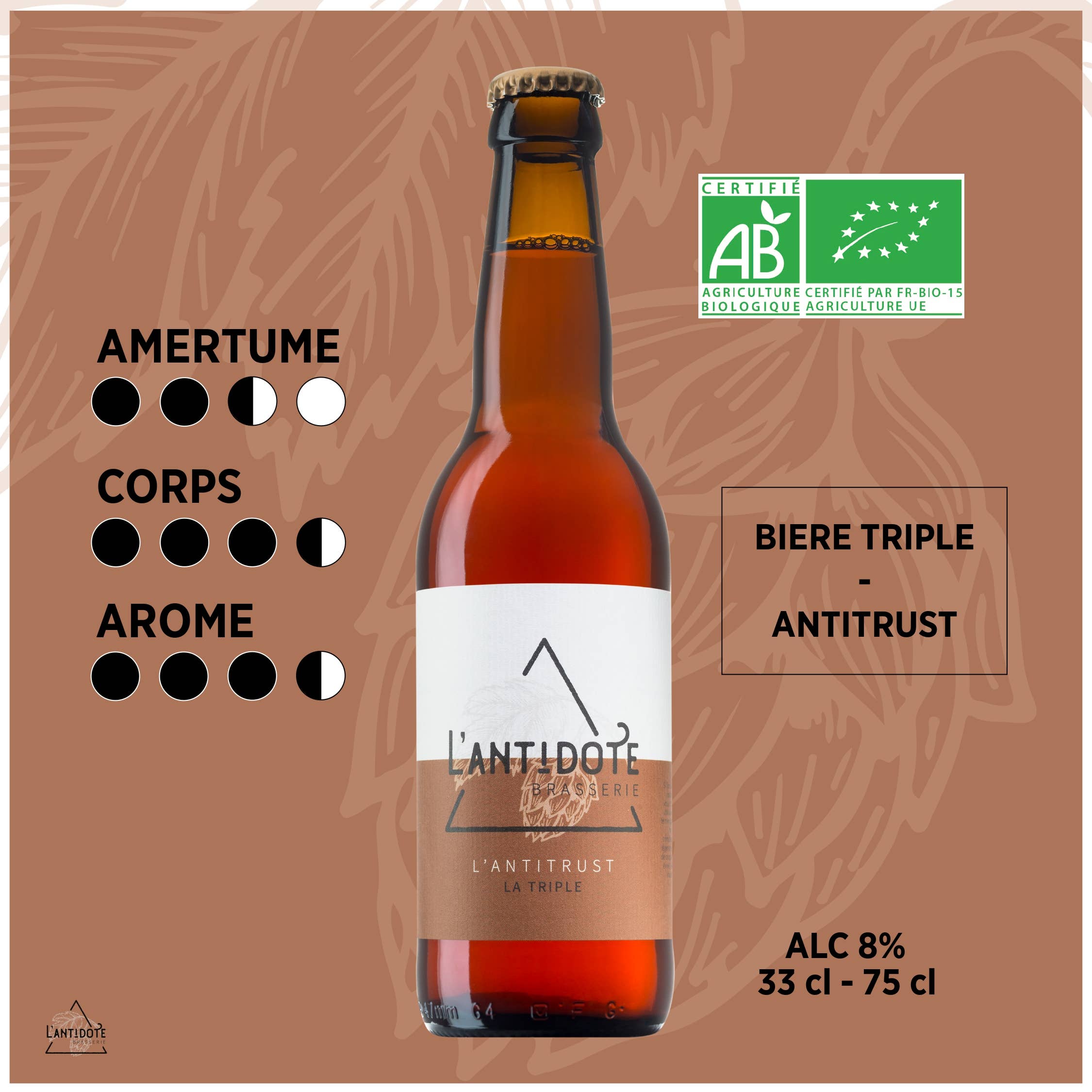 L'antidoto... Questa è la storia di un birrificio artigianale situato nel cuore delle Alpi... È una storia d'amore intorno a prodotti di qualità, per momenti eccezionali. Una grande storia inizia con una buona birra e buoni amici. Ingredienti biologici, acqua fresca delle nostre montagne e una buona dose di creatività sono gli elementi essenziali di un buon Antidoto. Unisciti a noi presto per scoprire le nostre birre bionde, bianche, triple e tutti i nostri vini effimeri!