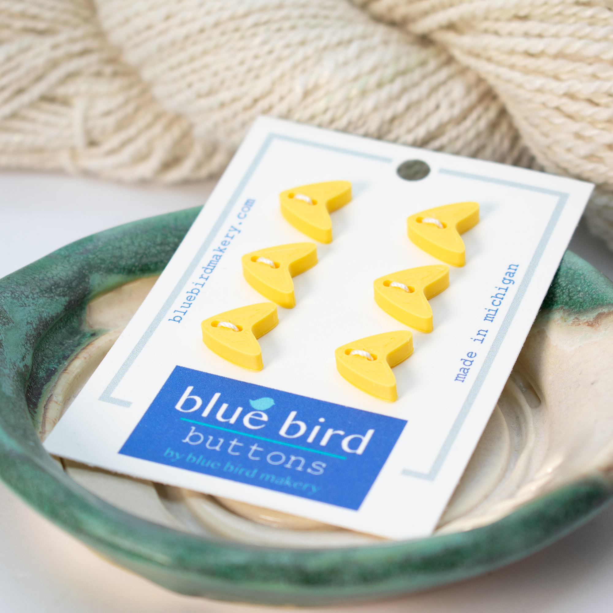 Blue Bird Makery è specializzato in strumenti per le arti tessili progettati con cura, tra cui segnapunti, piattini magnetici per accessori, misuratori di aghi e altro ancora. Presentiamo anche design originali di bottoni perfetti per capi fatti a mano, tutti prodotti in modo responsabile con bioplastiche stampate in 3D.