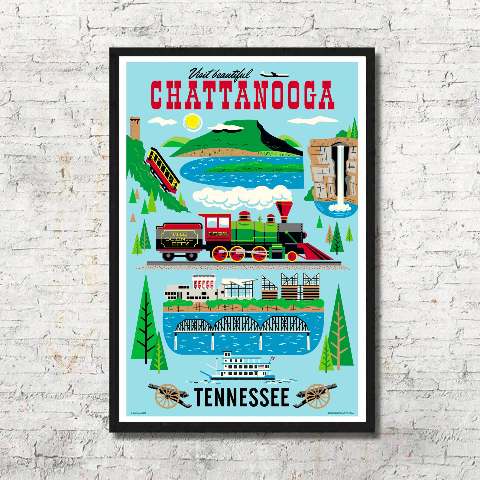 Red Robot è l'alter ego di Jim Zahniser, illustratore e graphic designer con sede a Pittsburgh, PA. Ispirato dall'amore per i viaggi e la visita di posti nuovi, la sua passione è creare poster di viaggio in stile vintage. La serie si ispira alla bellezza unica e alla ricca storia di ogni città . Jim vive nella Steel City con la moglie Carrie, nata a Seattle, e i loro due gatti Sadie e Hank.