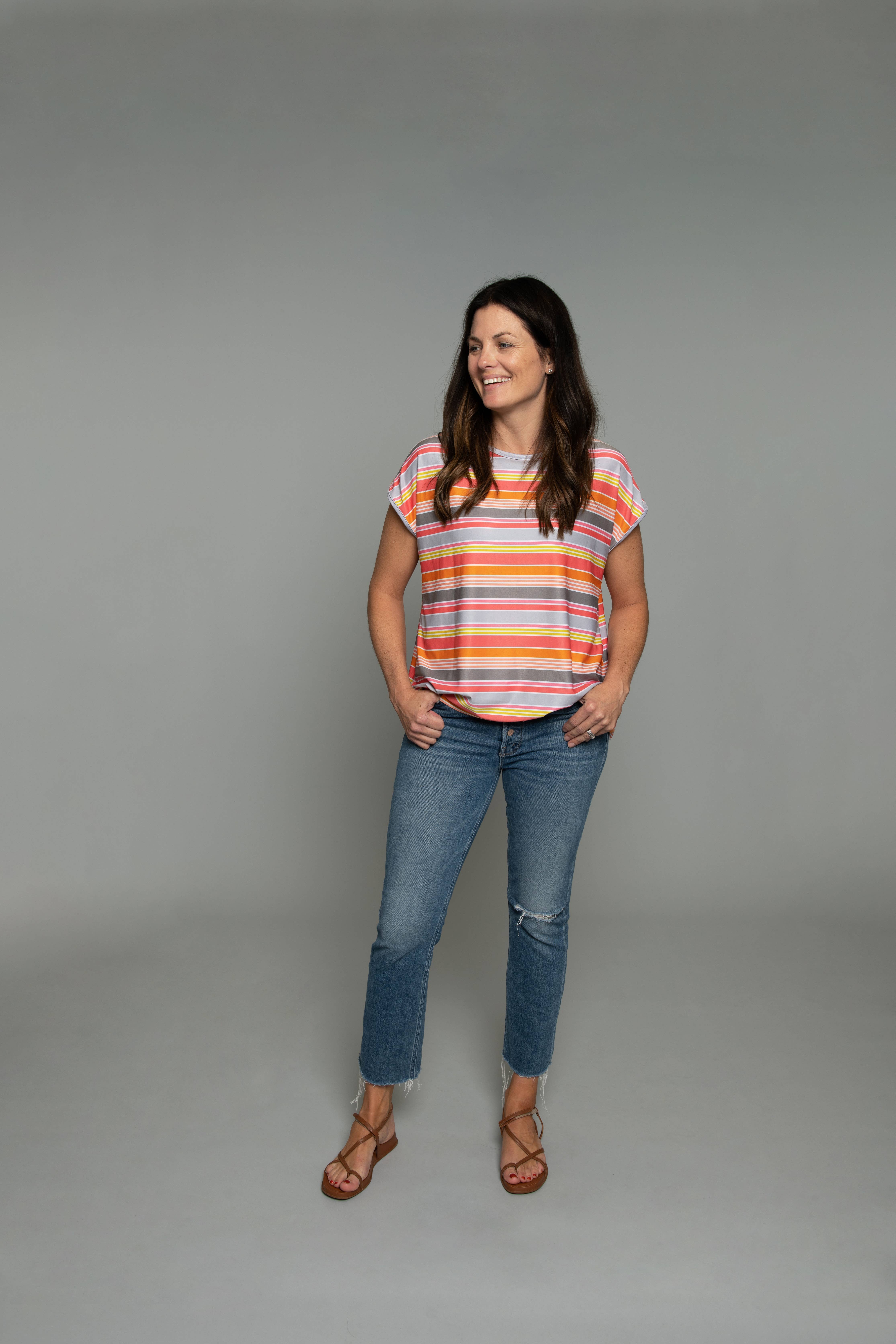 Abbigliamento reversibile»? Fare le valigie dovrebbe essere divertente, non stressante. Dovrebbe essere facile. Con Flip puoi confezionare 4 capi di abbigliamento e generare 16 abiti diversi. Flip è un marchio di abbigliamento divertente, interessante e diverso. Flip è incentrato su colori, stampe e motivi. Flip è facile. Facile da indossare. Facile da pulire. Facile da imballare Flip è prodotto al 100% negli Stati Uniti e ogni articolo è COMPLETAMENTE REVERSIBILE! Flip utilizza il tessuto Repreve (realizzato con bottiglie di plastica riciclate post-consumo). Flip utilizza un processo di stampa proprietario che consente di stampare due stampe uniche su un singolo strato di tessuto e questo rende Flip completamente reversibile. Flip è stato creato da un team madre/figlia con un'esperienza combinata di 48 anni nel design di abbigliamento. Per la prima volta, i due stanno lavorando insieme per lanciare un'azienda multigenerazionale di proprietà e guida femminile specificamente rivolta alle viaggiatrici.