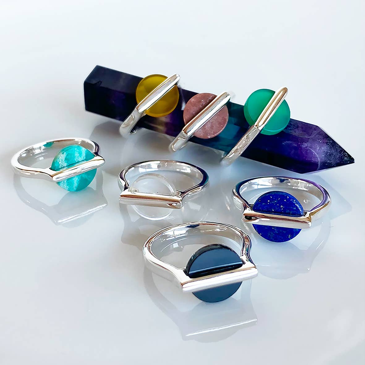 Dopo molti viaggi alla scoperta di culture diverse, Charline ha scoperto le sue passioni per la pietra, il gioiello, la forma, il simbolico. Così nasce talismas. È stato nello storto dei brulicanti bazar dell'India che tutto è iniziato, alla ricerca delle pietre naturali più belle e di un gioiello che sposerà ed evidenzierà ciascuna delle pietre.